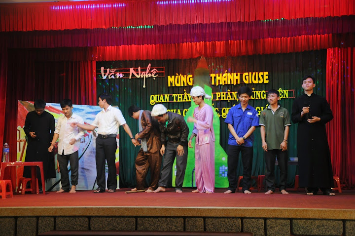 Tháng ba là tháng mà Hội Thánh dành riêng để kính nhớ Thánh Cả Giuse, người cha nuôi của Chúa Giêsu, người công chính, người cha gương mẫu của mọi gia đình, người thợ mộc thật đơn sơ, hiền hậu… Giáo Hội Việt Nam, Giáo phận Qui Nhơn, Chủng viện Qui Nhơn, dòng Mến Thánh Giá Qui Nhơn, cha Giám đốc chủng viện và một số cha giáo, cùng một số anh em trong chủng viện đã chọn Thánh Giuse làm thánh quan thầy. Nhân dịp nầy, vào Thứ tư ngày 19/3/2014, trong bầu khí hân hoan mừng lễ Quan thầy, cha Giám đốc chủng viện Qui Nhơn đã tổ chức một đêm văn nghệ để nói lên tâm tình biết ơn và chúc mừng của chủng sinh gửi đến Giáo phận, Chủng viện, cha Giám đốc và quý cha giáo.