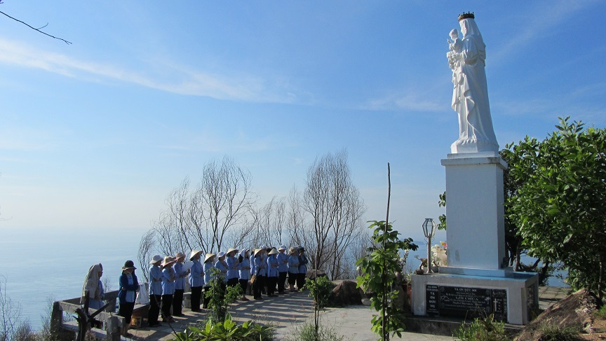 Khoảng nửa giờ sau, 26 chị em Học viện, kể cả hai chị giáo, có thêm chị Anna Thanh Hương, phụ trách vùng Nauy về thăm Việt Nam cũng tháp tùng chuyến hành hương đến chân núi Đức Mẹ.