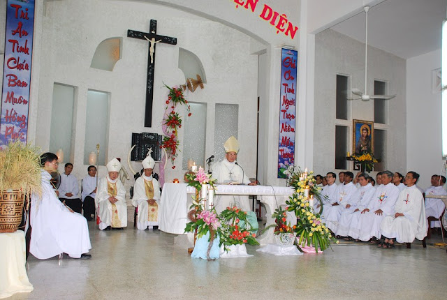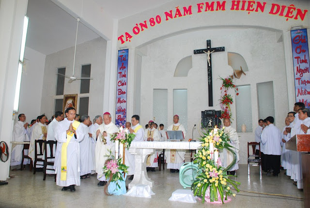 Thánh lễ diễn ra tại nhà thờ Thánh Phanxicô, Ghềnh Ráng, Qui Nhơn, do Đức TGM Phêrô Nguyễn Văn Nhơn chủ sự. Đồng tế trong thánh lễ hôm nay có Đức cha Matthêô Nguyễn Văn Khôi, Đức cha Phêrô Nguyễn Soạn, Đức cha Micae Hoàng Đức Oanh các cha trong và ngoài giáo phận Qui Nhơn, Nam Nữ Tu sĩ các Hội dòng và đông đảo anh chị em giáo dân gần xa tham dự.