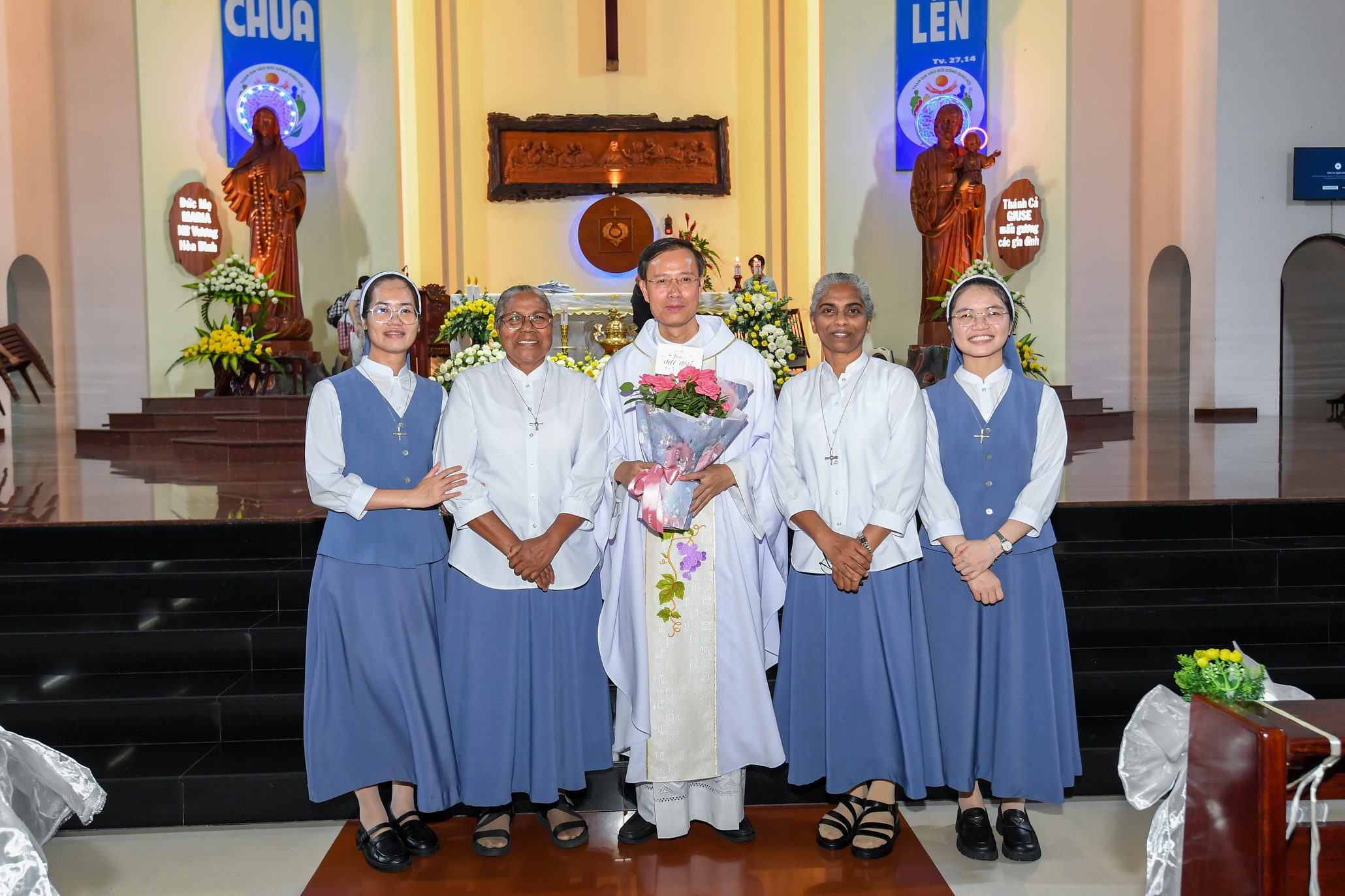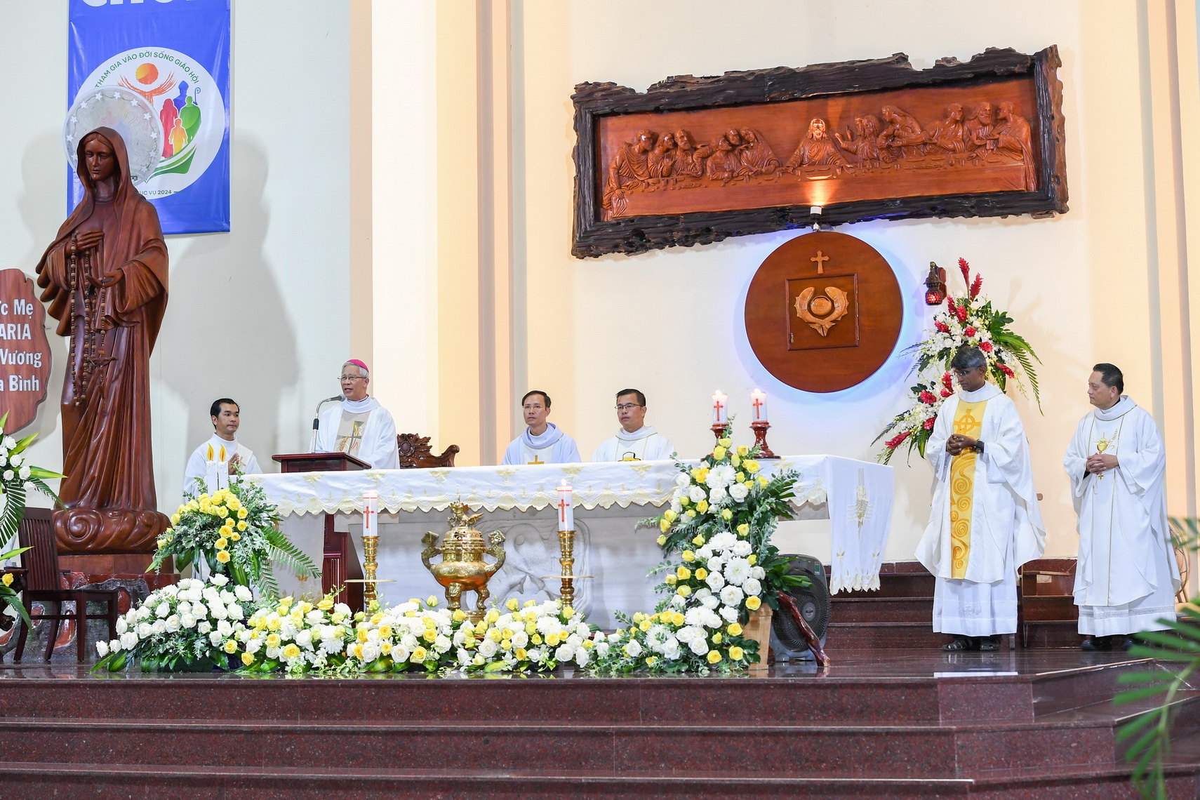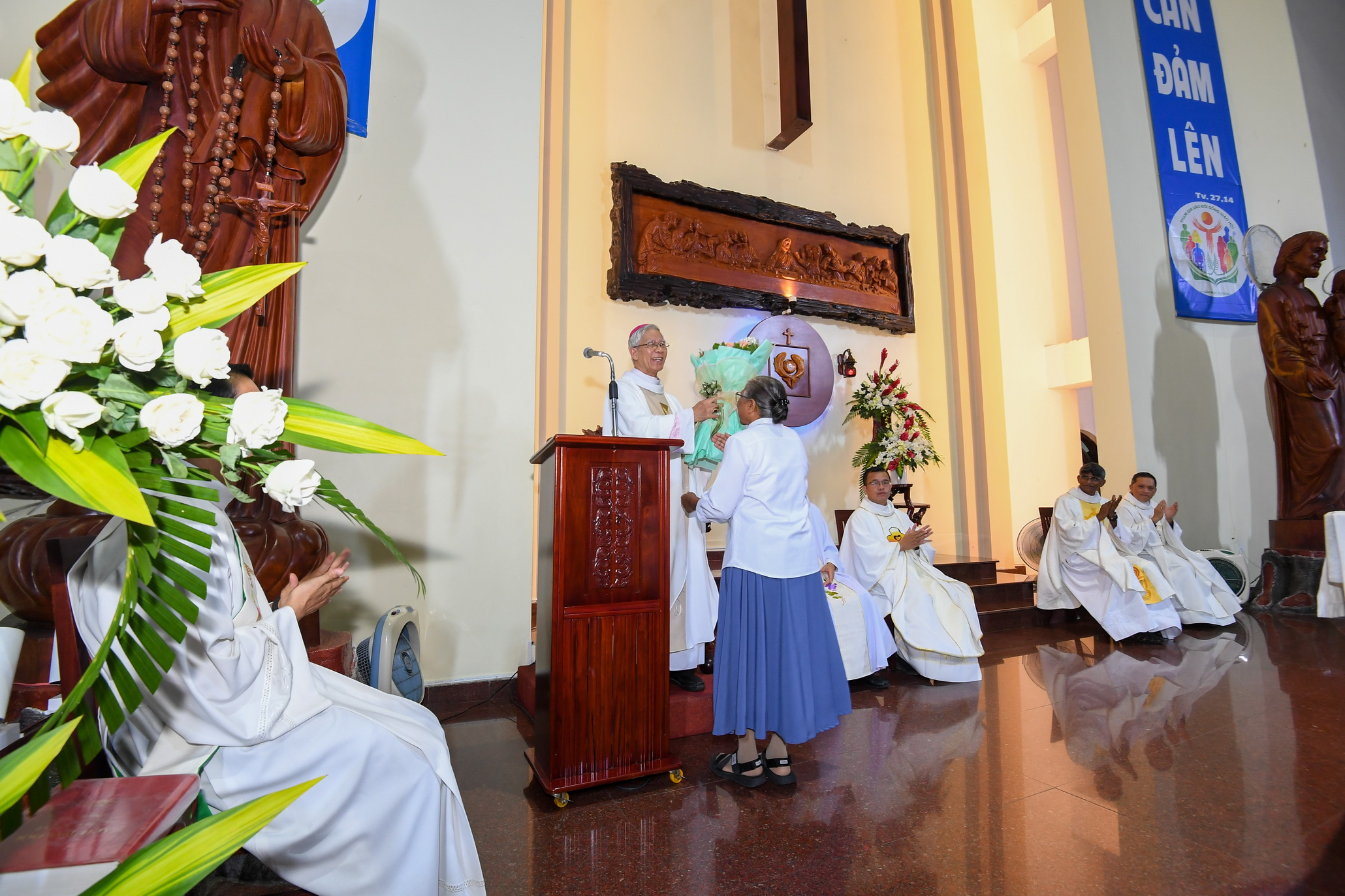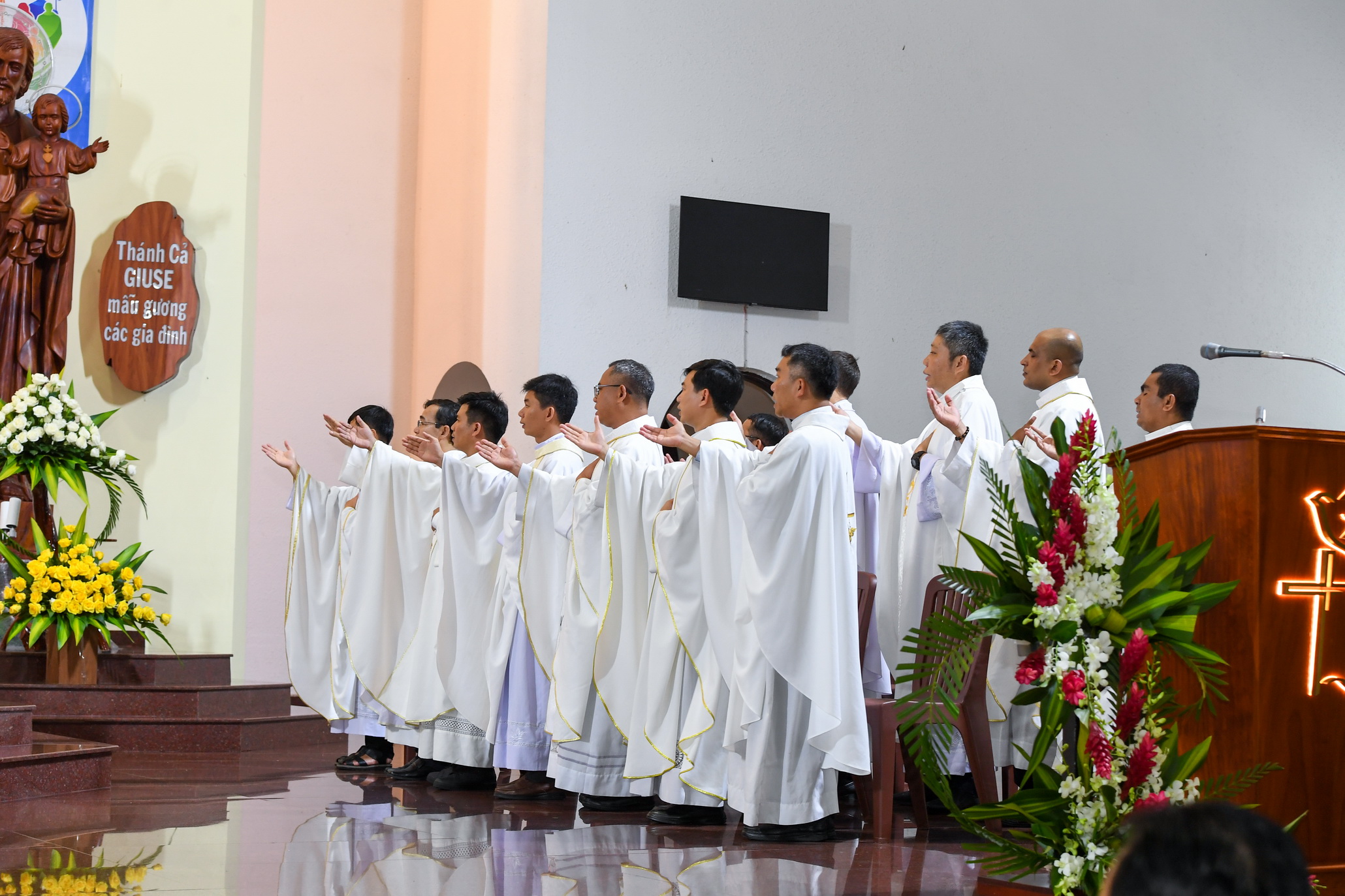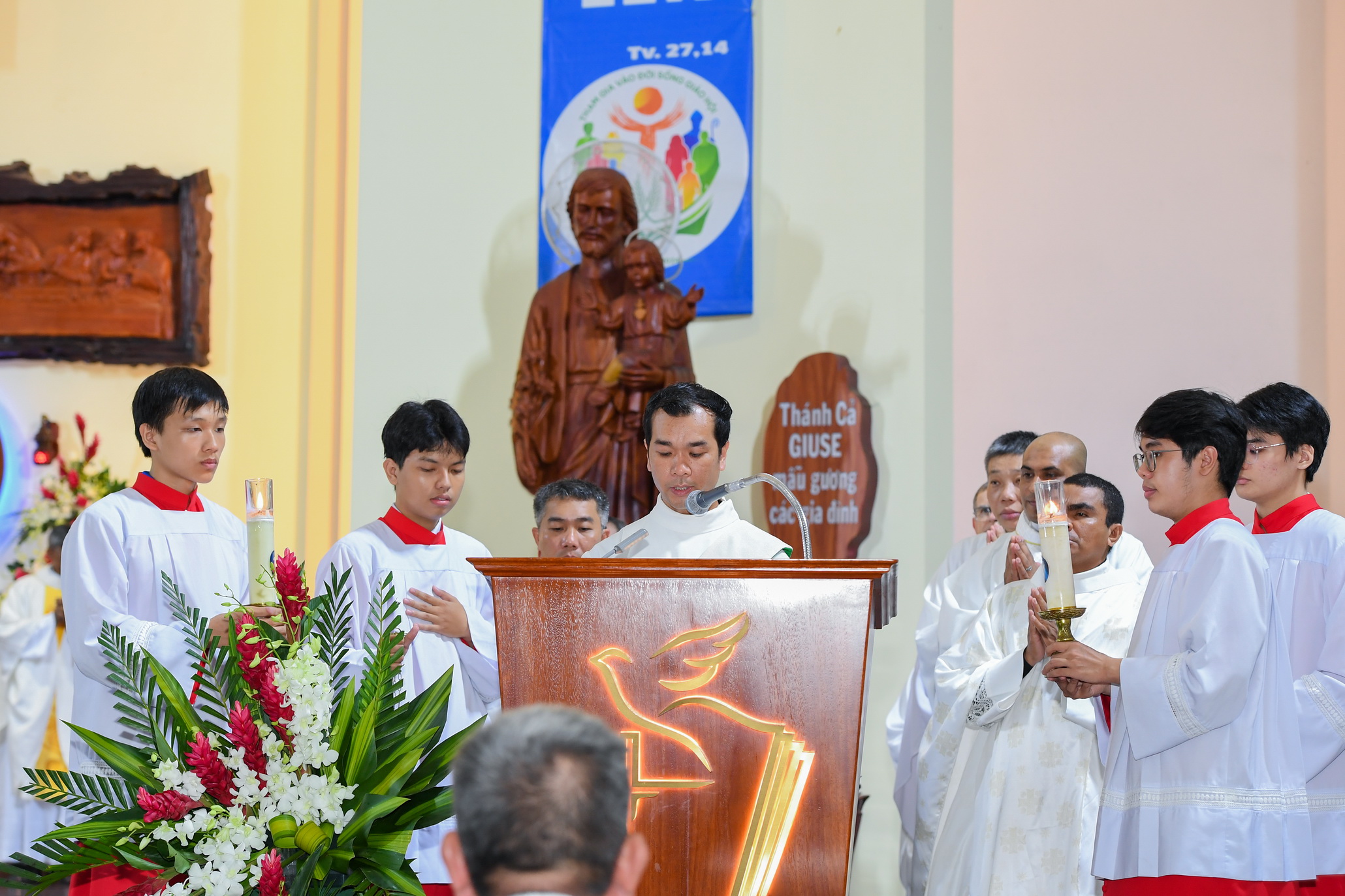 Thánh lễ do Đức cha Matthêô chủ tế, đồng tế có các cha thuộc Tổng Giáo phận Sài Gòn và các cha Dòng; hiện diện trong thánh lễ còn có đông đảo nam nữ tu sĩ các hội dòng khác nhau cùng cộng đoàn dân Chúa.