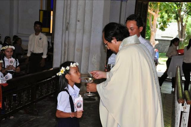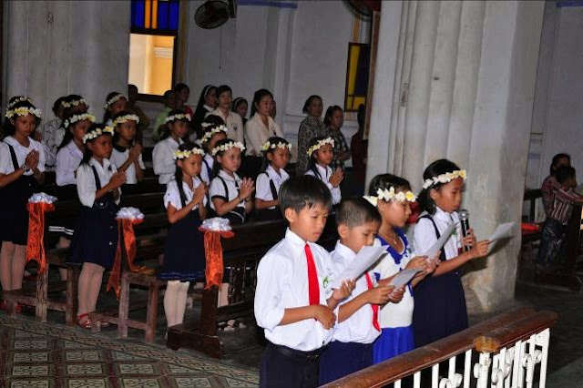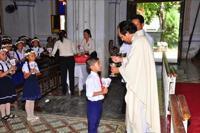 Sáng Chúa nhật 20 thường Niên, này 17 tháng 8 năm 2014, 31 em thiếu nhi giáo xứ Mằng Lăng rất hạnh phúc được rước Chúa Giêsu Thánh Thể lần đầu tiên trong đời.