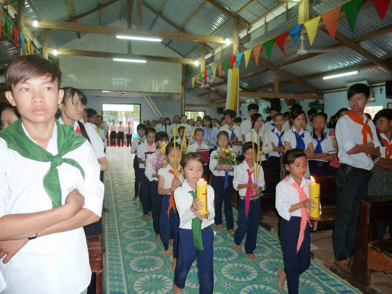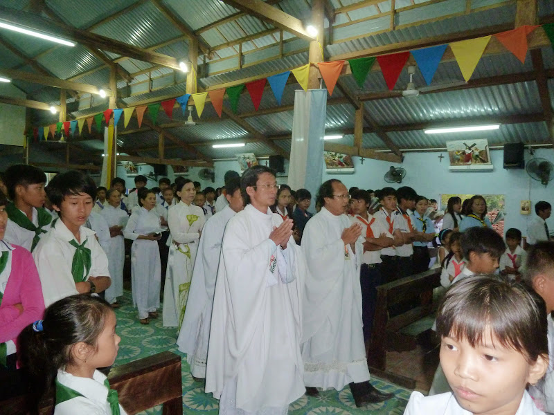 Niềm vui được tiếp nối sau thánh lễ là nghi thức bế mạc, phát thưởng cho Hội trại của các em giáo lý trong Giáo xứ với hơn 200 tham dự viên được tổ chức từ sáng 30/4 cho đến nay và bữa tiệc huynh đệ tại nhà xứ.