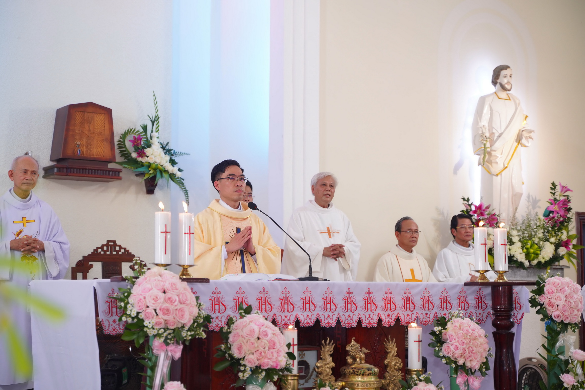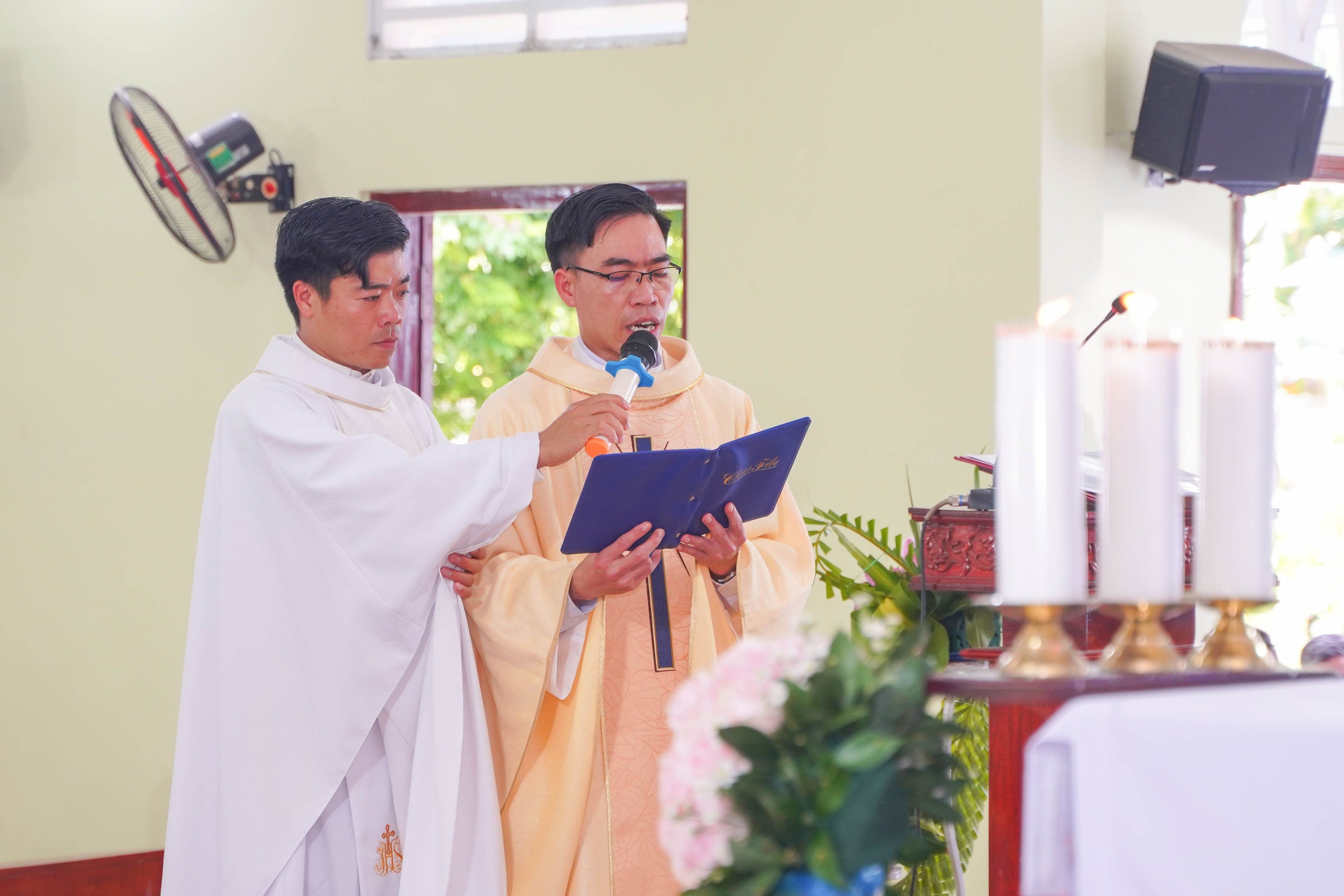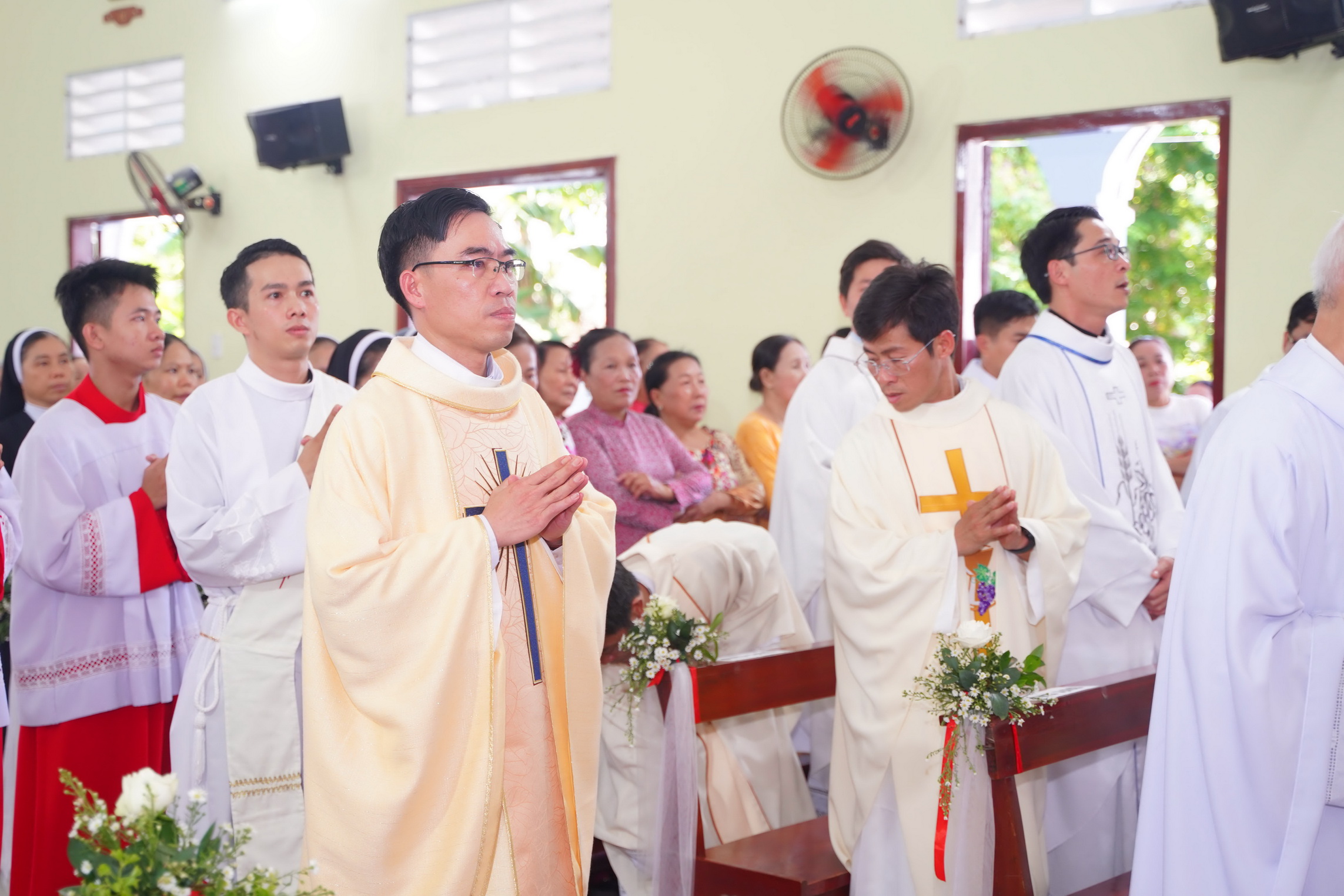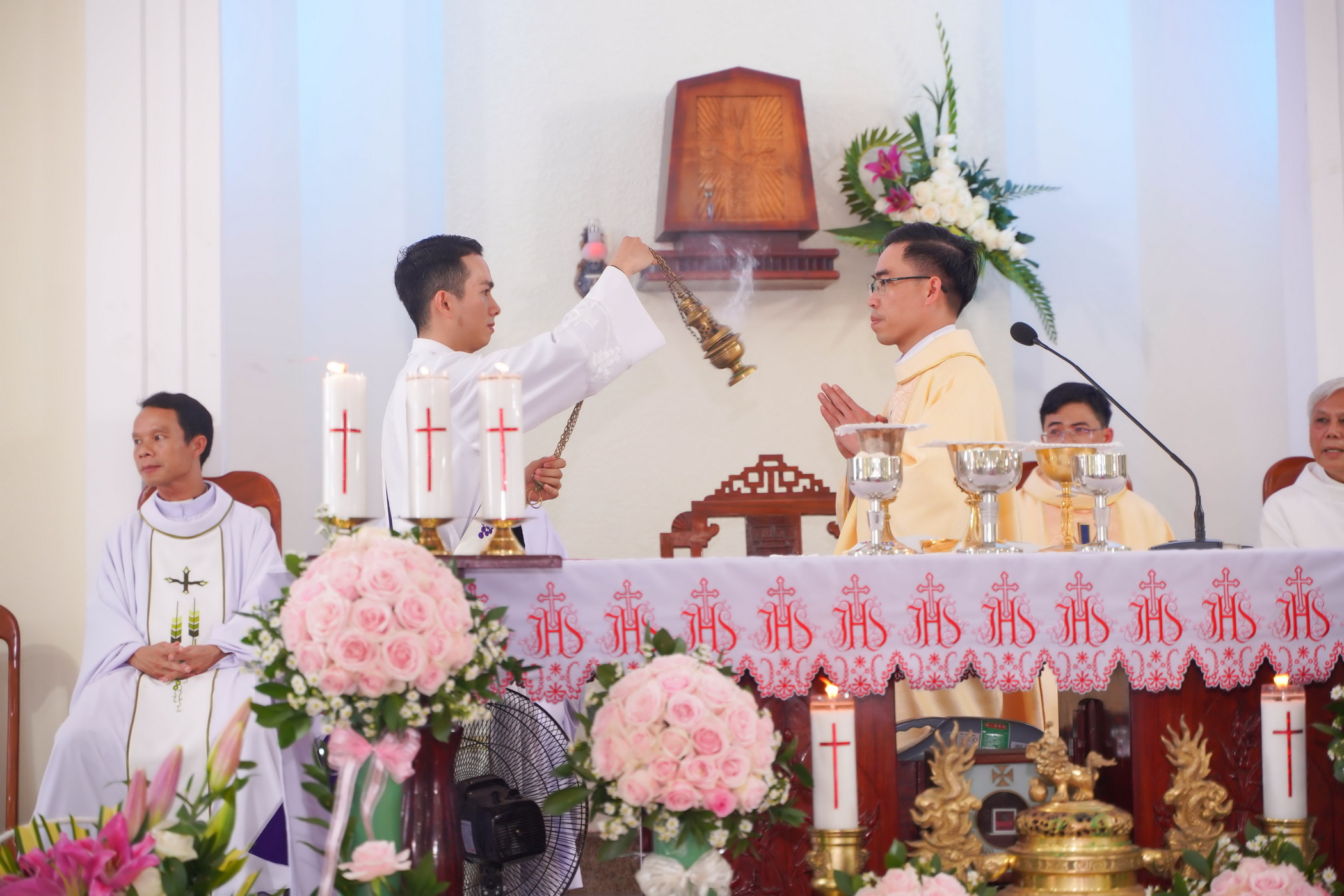 Thánh lễ do chính tân linh mục chủ sự, cùng đồng tế của quý cha. Hiệp thông trong thánh lễ có quý tu sĩ nam nữ, ân thân nhân, gia đình và đông đảo bà con giáo dân trong cũng như ngoài giáo phận.