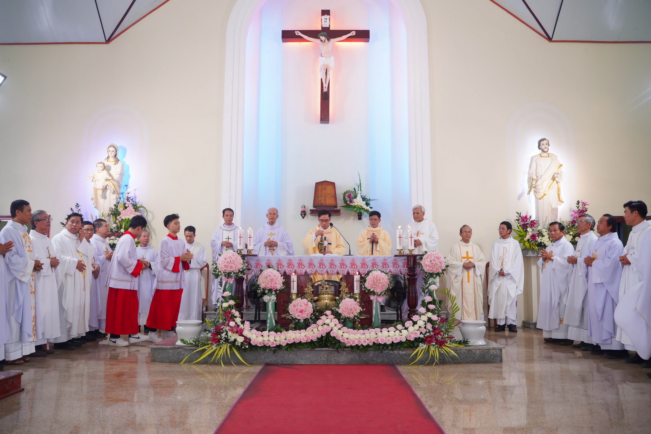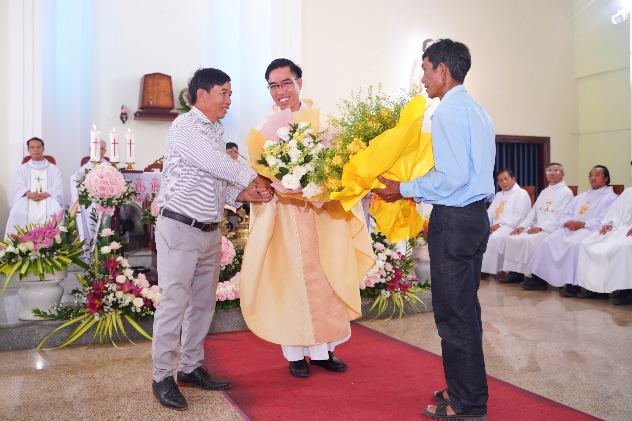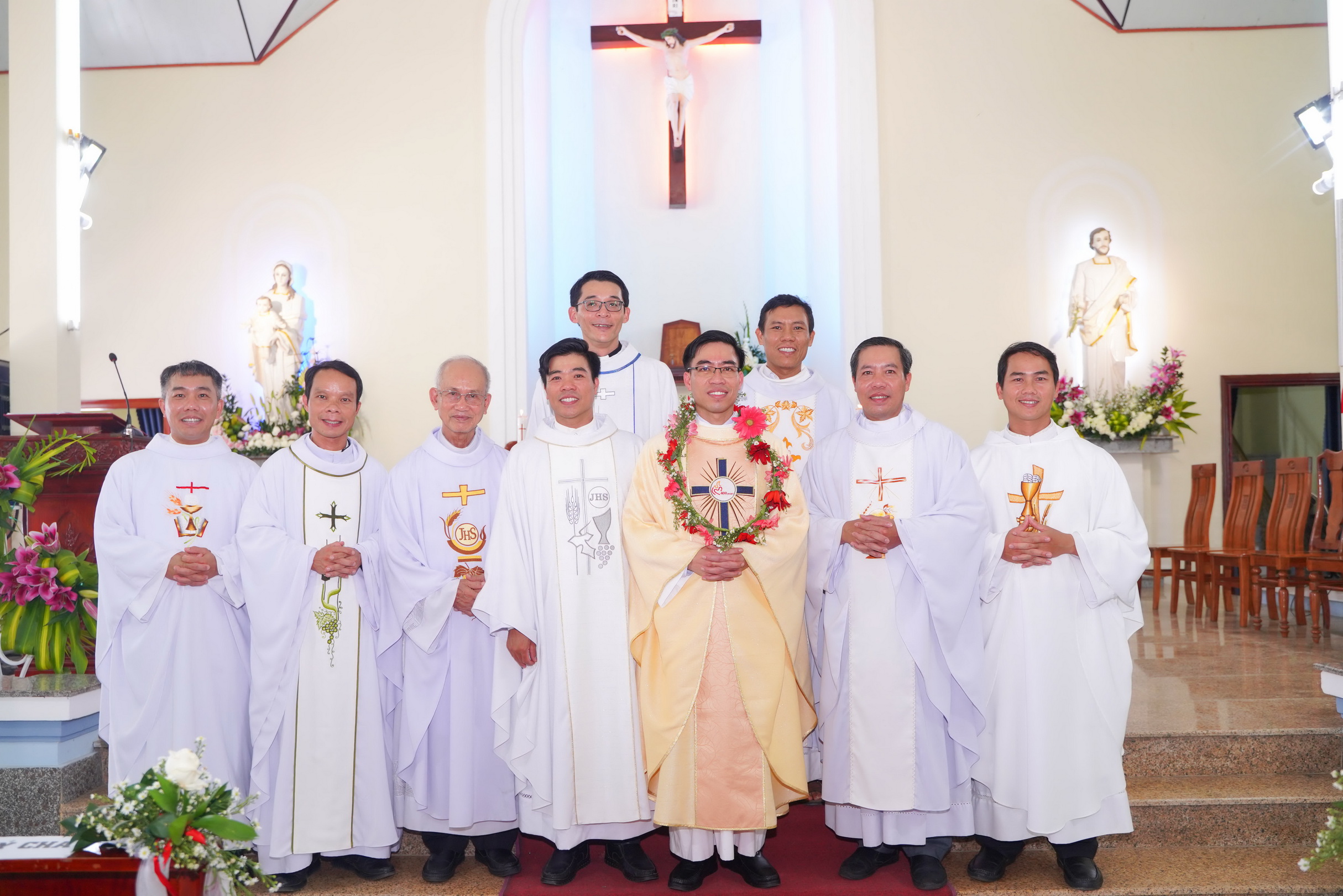 Thánh lễ do chính tân linh mục chủ sự, cùng đồng tế của quý cha. Hiệp thông trong thánh lễ có quý tu sĩ nam nữ, ân thân nhân, gia đình và đông đảo bà con giáo dân trong cũng như ngoài giáo phận.