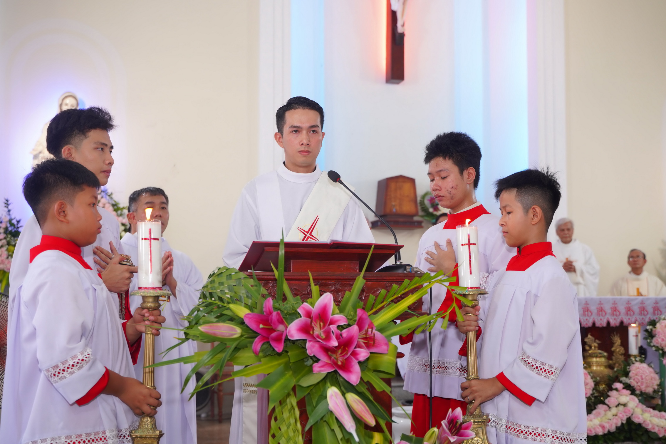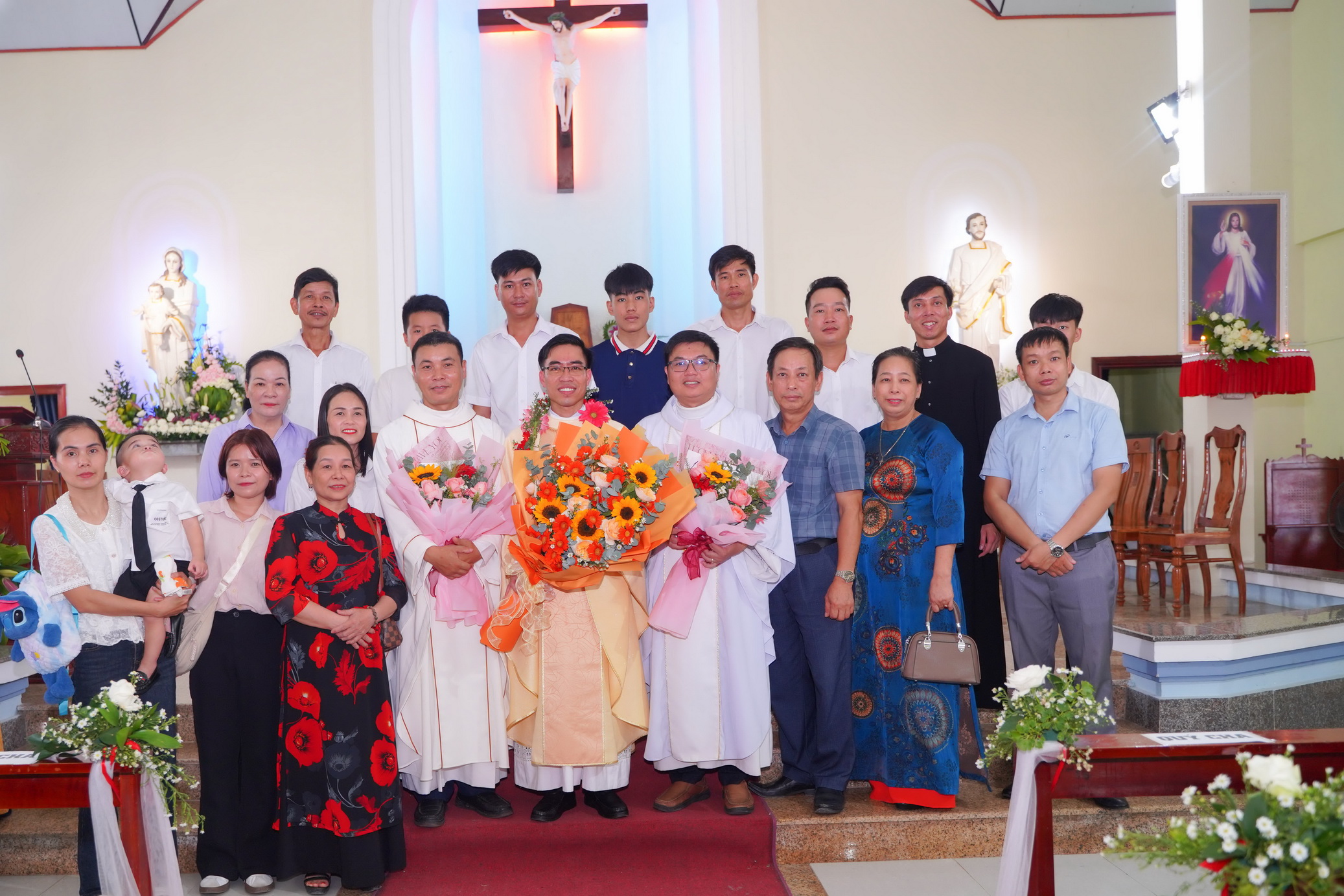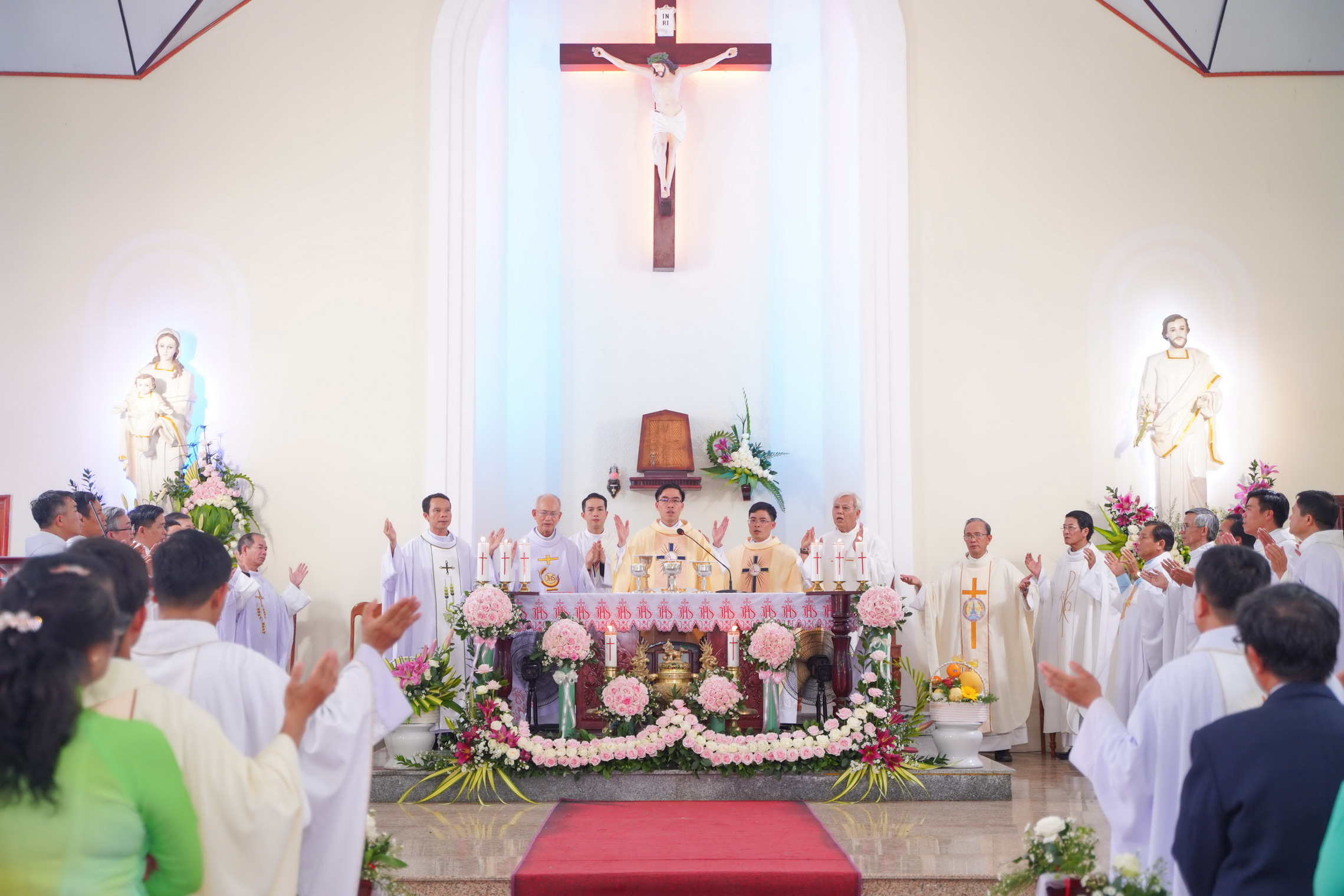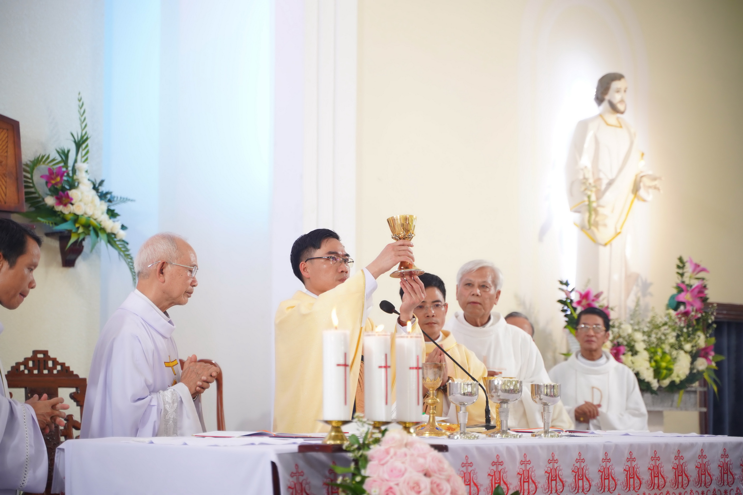 Thánh lễ do chính tân linh mục chủ sự, cùng đồng tế của quý cha. Hiệp thông trong thánh lễ có quý tu sĩ nam nữ, ân thân nhân, gia đình và đông đảo bà con giáo dân trong cũng như ngoài giáo phận.