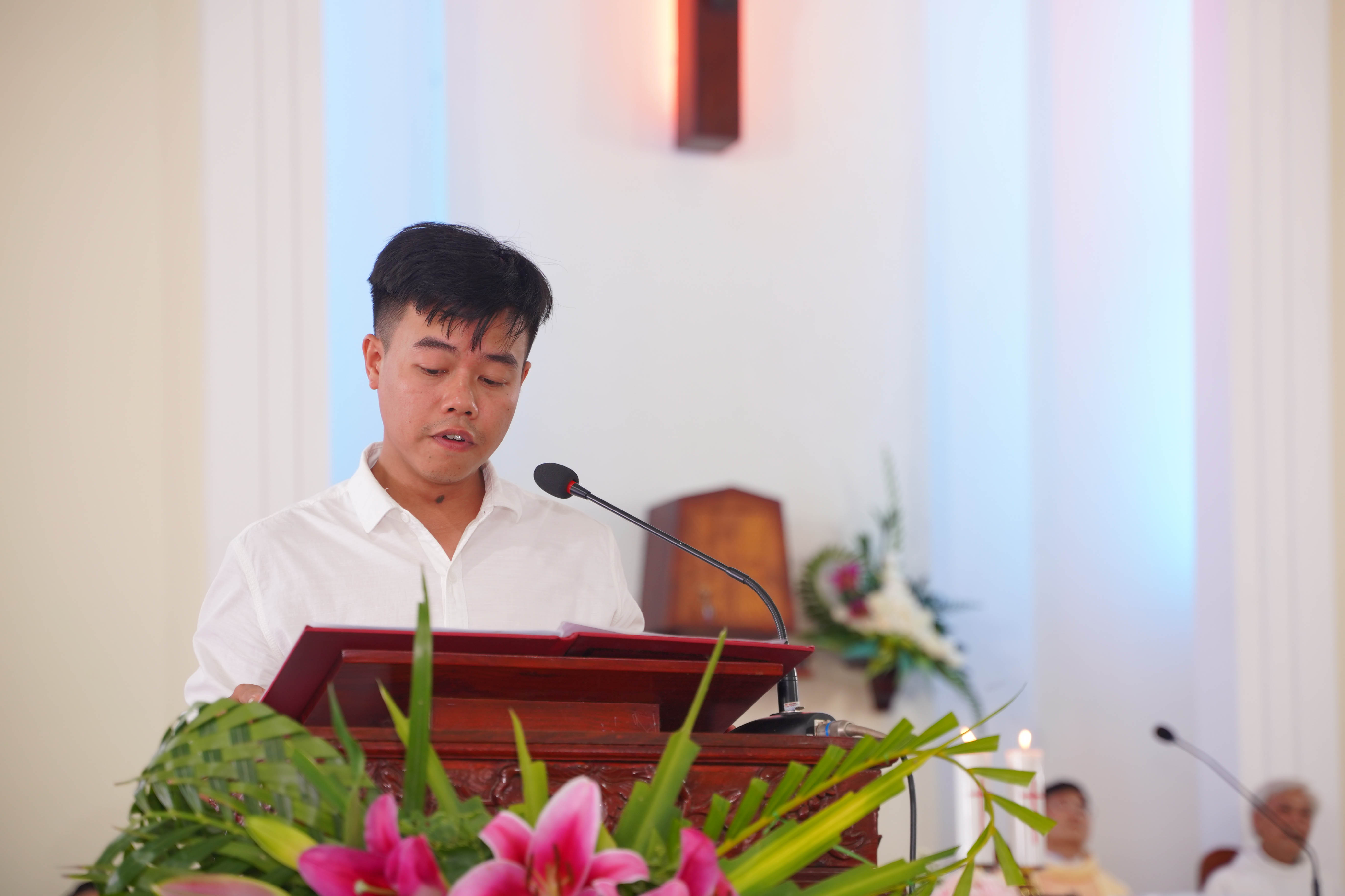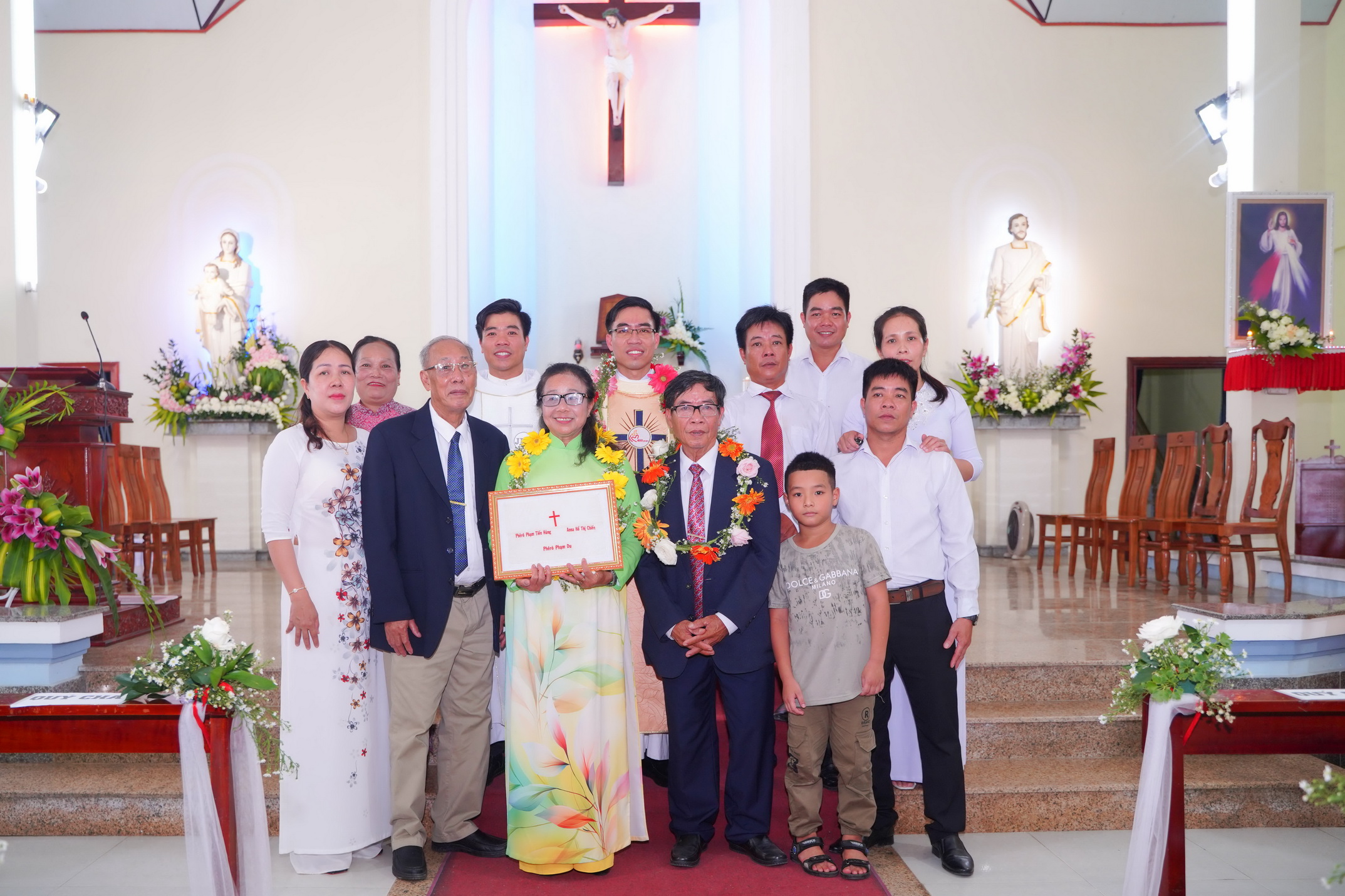 Trong tâm tình tạ ơn Chúa, cha đã trở về quê hương để dâng thánh lễ như một nghĩa cử đầy cảm động của lòng cảm ơn và biết ơn. Trước khi ban phép lành đầu tay cho cộng đoàn, cha đã dâng lời tạ ơn Thiên Chúa vì muôn vàn hồng ân đã tuôn đổ trên cuộc đời, gia đình và giáo xứ. Cha cũng bày tỏ lòng biết ơn sâu xa đến Đức cha Matthêô, Đức Giám mục Giáo phận; quý cha, quý tu sĩ và toàn thể cộng đoàn đã luôn đồng hành và nâng đỡ bằng lời cầu nguyện.