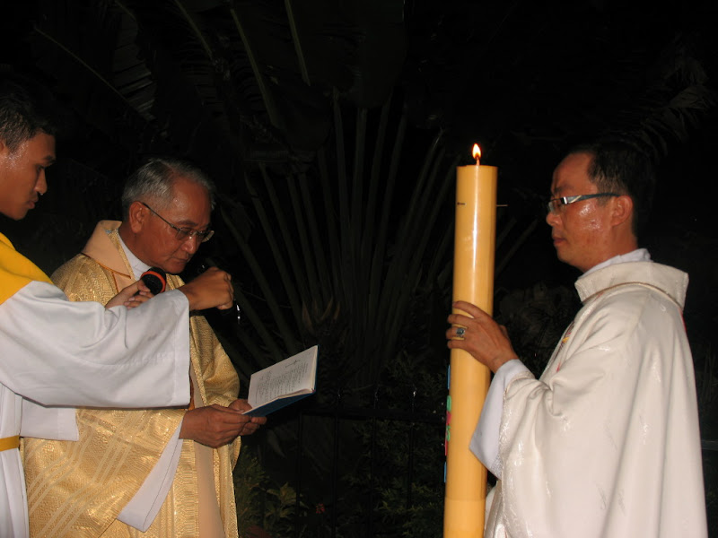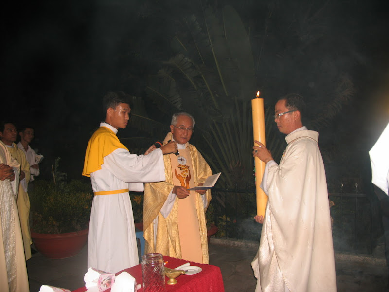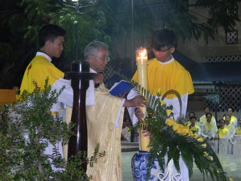 Đặc biệt trong đêm vọng này, cha chủ tế làm phép mới lại Lửa, Nến, Nước.