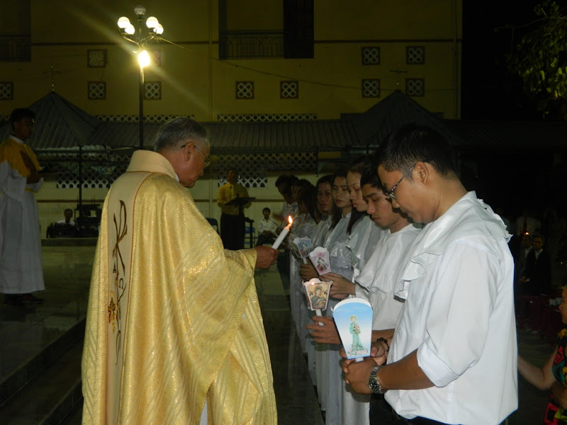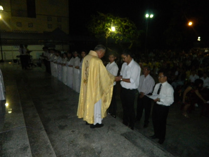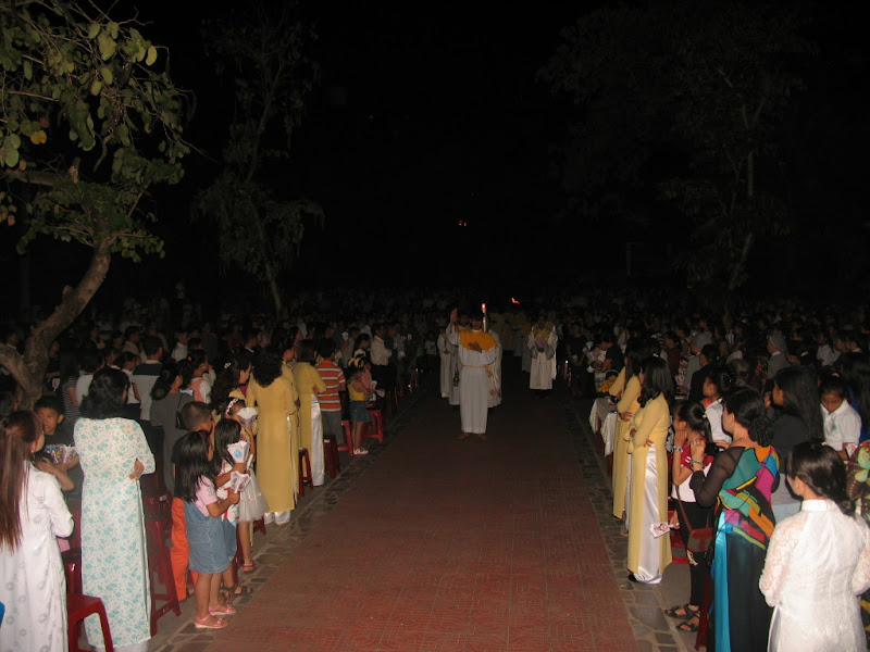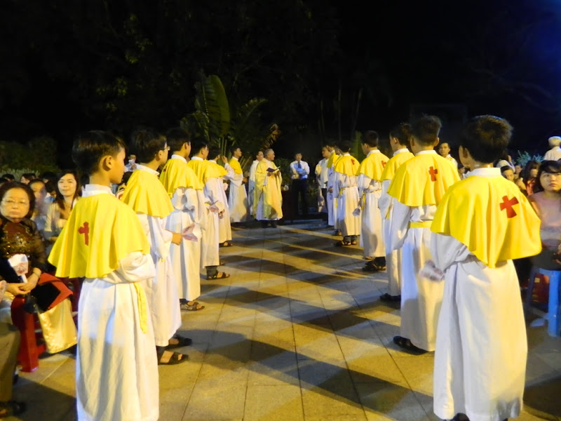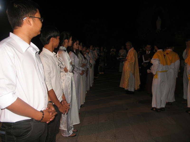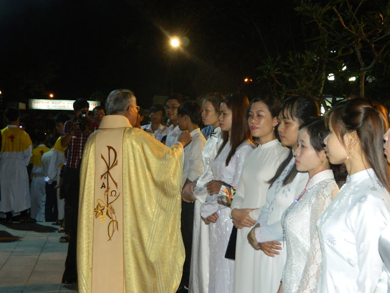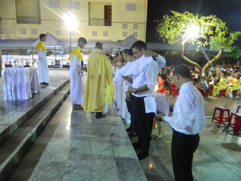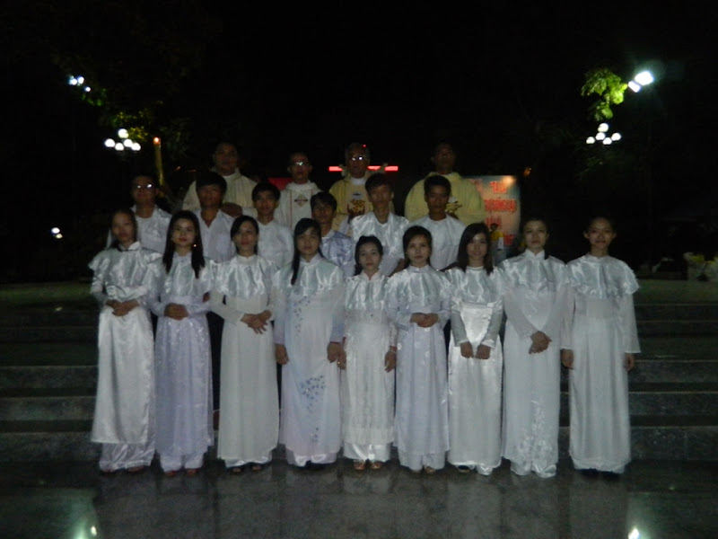 Trong đêm nay, giáo xứ hân hoan đón nhận mười bốn dự tòng lãnh các bí tích khai tâm, họ chính thức gia nhập vào Hội Thánh Chúa Kitô.