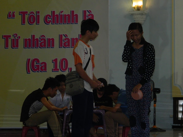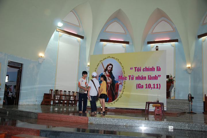 Vâng, hôm nay Chúa nhật thứ 4 phục sinh, lễ Chúa chiên lành, ngày Giáo hội cầu nguyện cho ơn thiên triệu linh mục, tu sĩ. Cha sở Phêrô Đặng Son đặc biệt chọn thánh lễ thiếu nhi để cử hành diễn nguyện ơn gọi được Cộng đoàn Mến Thánh Giá Tuy Hòa đảm nhận.
