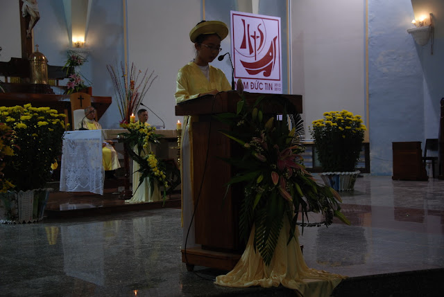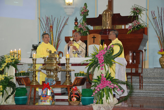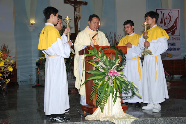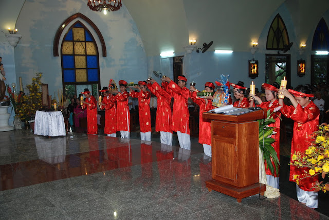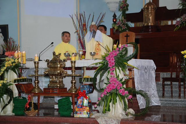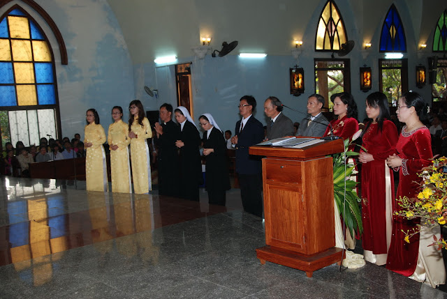Sáng nay, cộng đoàn dân Chúa giáo xứ Tuy Hòa được nghe thư chúc tết của Đức giám mục giáo phận Qui Nhơn thay cho bài giảng lễ. Theo thông lệ hằng năm, sau khi lên rước Mình Thánh Chúa, mỗi tín hữu được nhận một bì thư có lộc Lời Chúa để làm phương châm sống cho cả năm. Trước khi ban phép lành, ông phó chủ tịch đặc trách truyền thông ánh sáng Giacôbê Võ Văn Thần đại diện giáo xứ mừng tết Chúa, mừng tết cha sở, cha phó, quí cha đồng tế và nhận lại lời chúc của cha sở đến với giáo dân Tuy Hòa. Mọi người vỗ tay thật lớn, chúc nhau thật hay, bắt tay thật thắm thiết và có chung một mong ước chân thành, đó là “người người sống an lành, ngày xuân thắm ân tình và thiết tha như lời kinh”