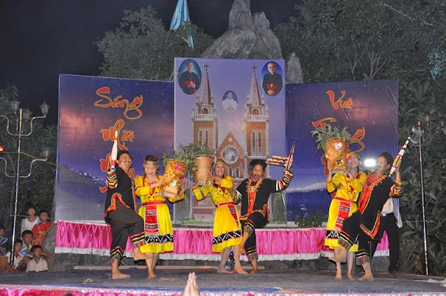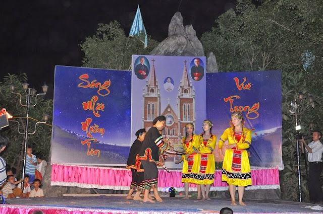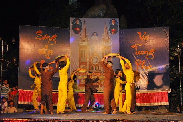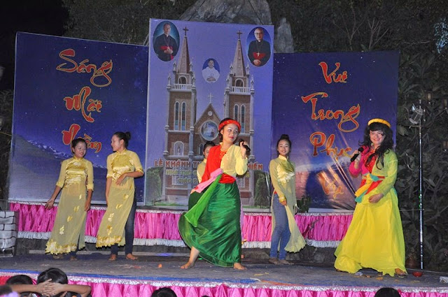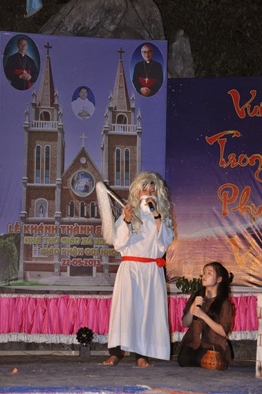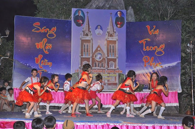 Vườn Vông – Sáng ngày 22/05 mặc dù trời nắng nóng như lửa đốt nhưng không làm giảm sút niềm vui, không làm nản lòng con dân của giáo xứ gần xa tuôn về để mừng lễ tạ ơn và cung hiến nhà thờ mới Vườn Vông.
