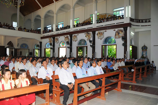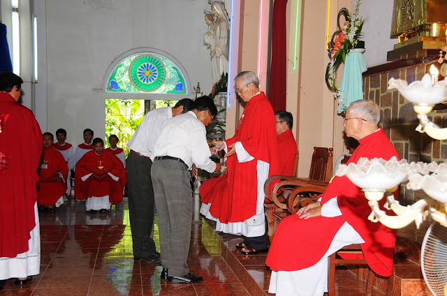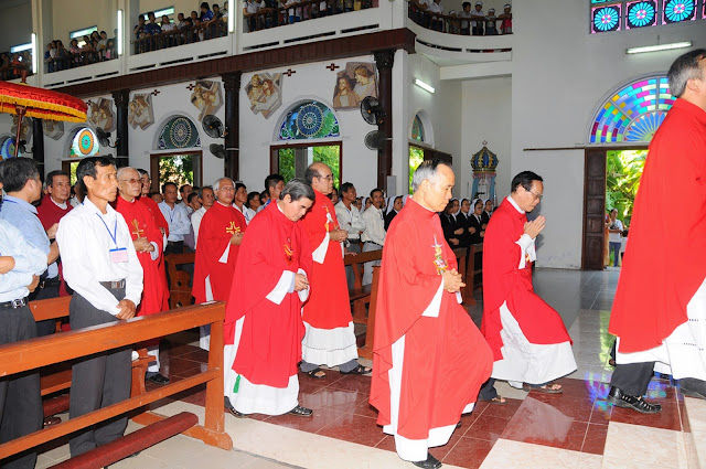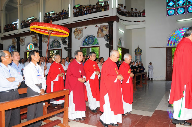 Đúng 9 giờ thánh lễ bắt đầu do cha Tổng đại diện Phêrô Hoàng Kym chủ sự. Cùng đồng tế và tham dự thánh lễ hôm nay có cha hạt trưởng Bình định, quý cha trong giáo phận, đông đảo các nam nữ tu sĩ, chủng sinh và anh chị em giáo dân. Đặc biệt trong thánh lễ hôm nay có sự tham dự của hơn 200 chức việc, giáo dân trong giáo phận đang tham dự khóa huấn luyện thường niên tại chủng viện Quy nhơn.