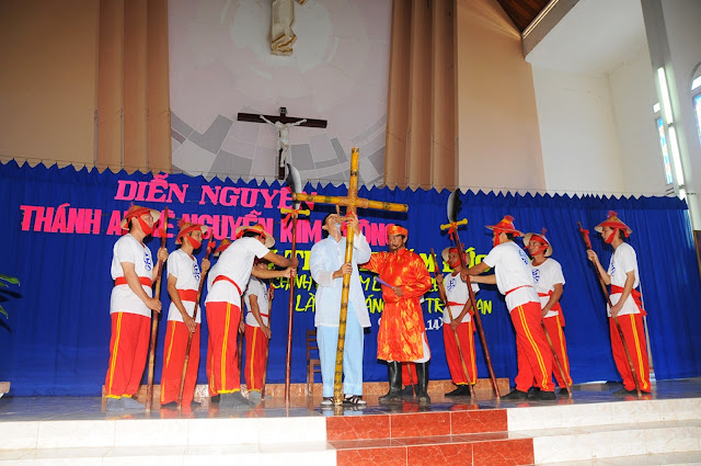 Trong tâm tình uống nước nhớ nguồn, trước thánh lễ, giáo xứ đã tổ chức chương trình diễn nguyện với nội dung ngắn gọn và súc tích. Mở đầu bằng những vũ khúc ngợi ca của các em thanh thiếu niên. Cao điểm của chương trình này là diễn lại cuộc đời nhân chứng và hành trình tử đạo của ông trùm cả Anrê Kim Thông.