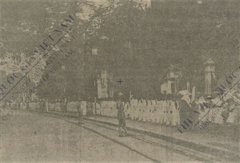 Các học sinh đi diễu qua Đài kỷ niệm cha A-lịch-sơn Đắc-lộ (Photo Khoan)
