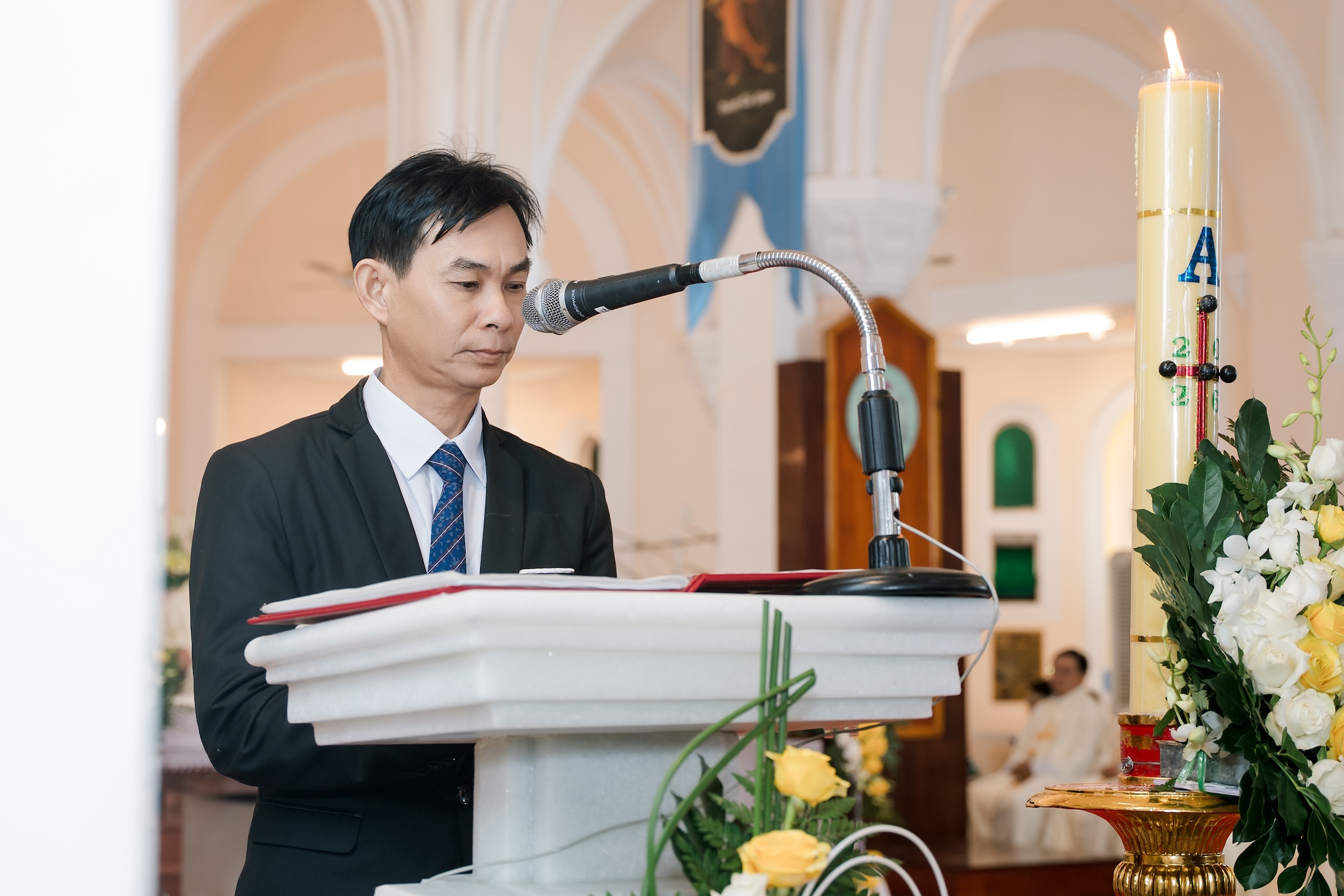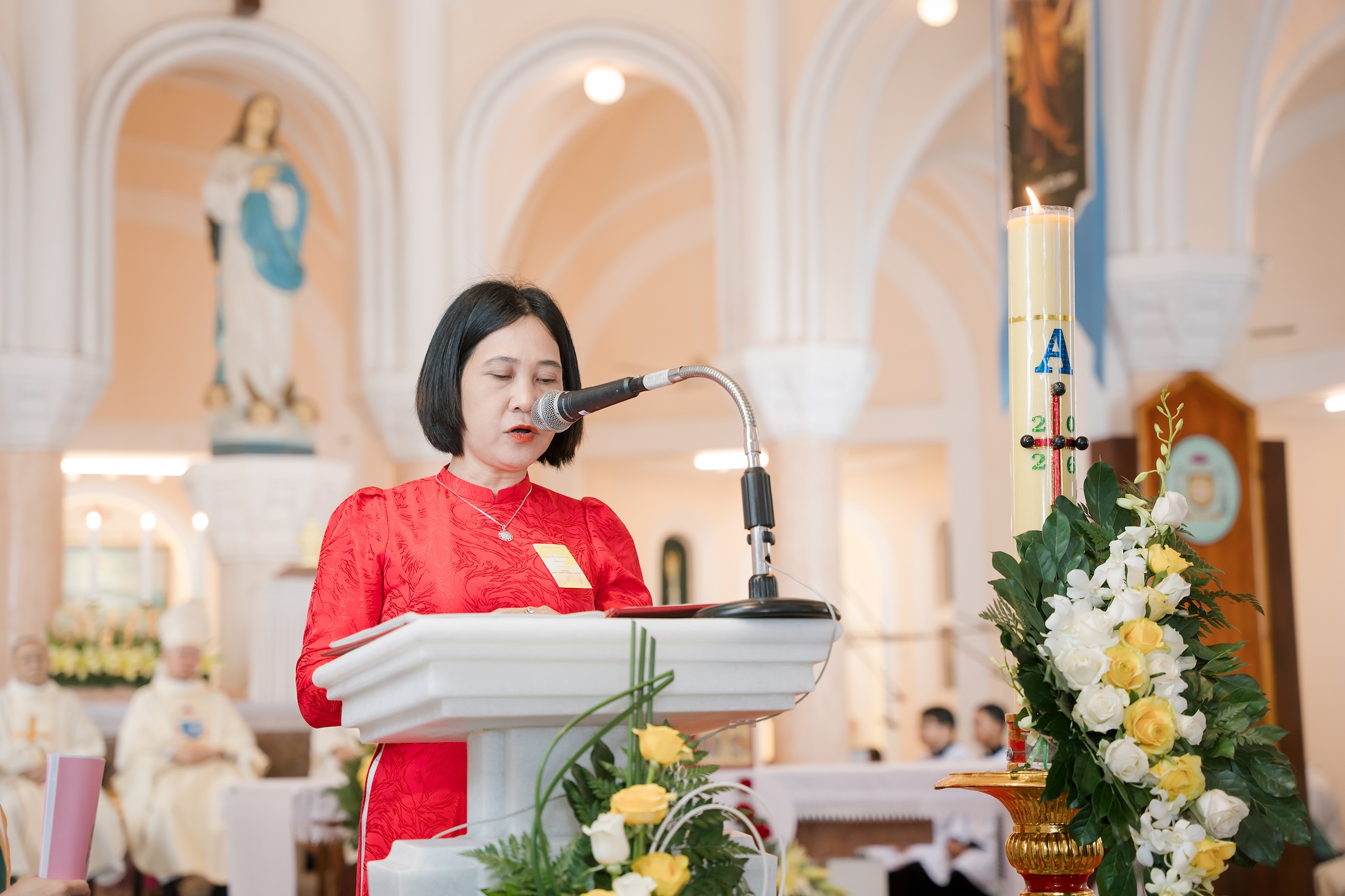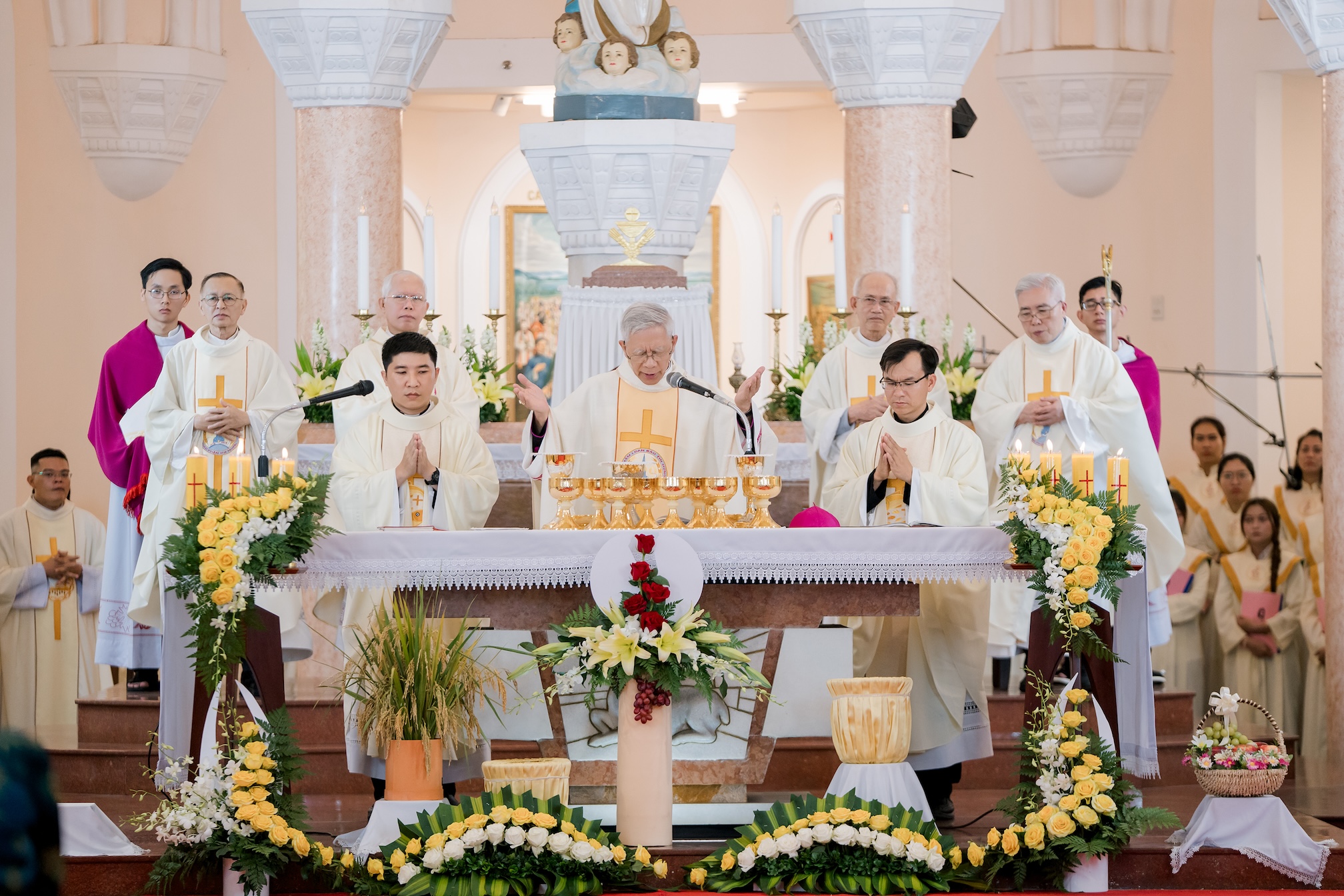 Thánh lễ do Đức cha Matthêô Nguyễn Văn Khôi, Giám mục Giáo phận chủ sự, cùng đồng tế với linh mục đoàn trong và ngoài giáo phận. Hiện diện trong thánh lễ có quý tu sĩ nam nữ và đông đảo bà con giáo dân từ nhiều nơi.