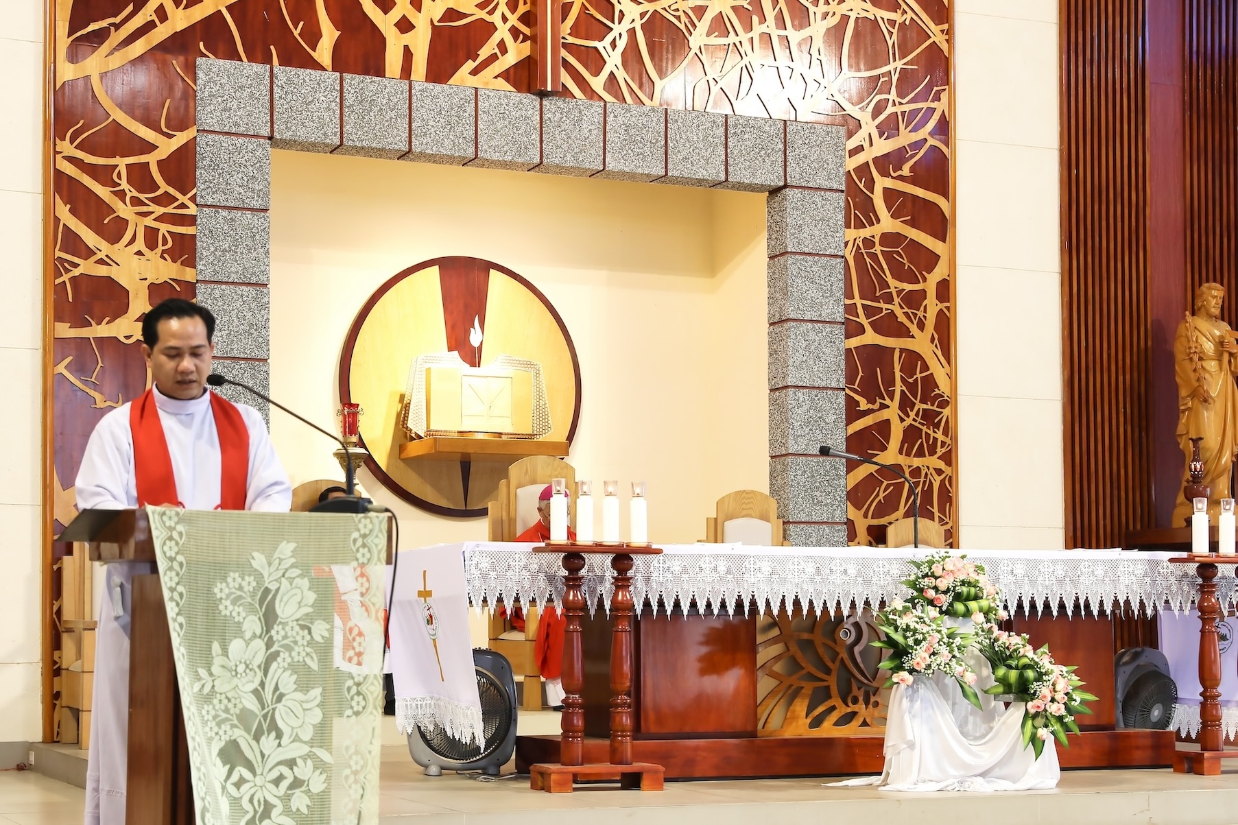 Thánh lễ đồng tế được cử hành lúc 10g15, cha Luy Nguyễn Xuân Vũ giảng lễ.