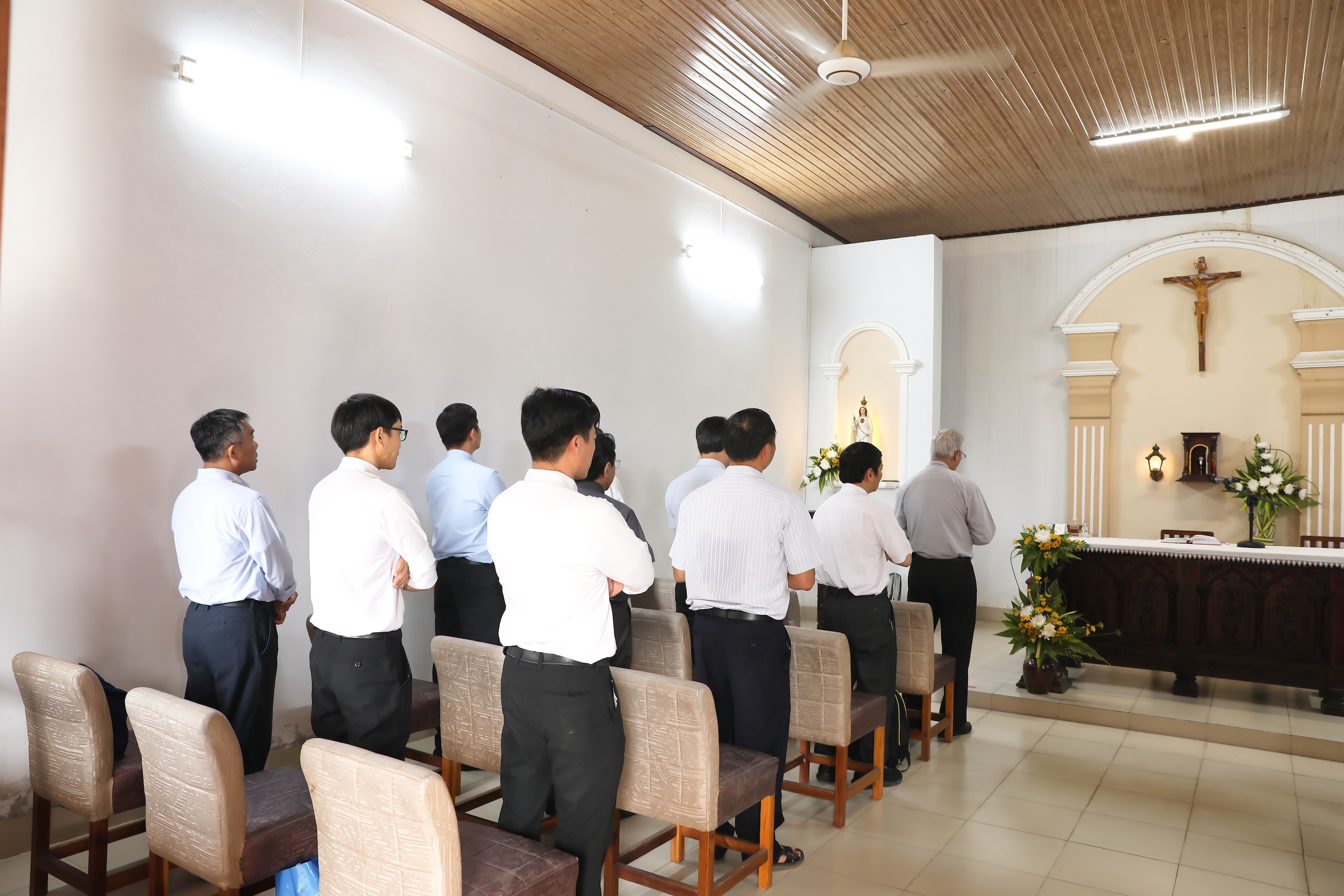 Chương trình bắt đầu lúc 8 giờ 00 bằng việc lần Chuỗi Mân Côi chung tại nhà nguyện. Sau chuỗi Mân Côi, các cha nghe đọc sách thiêng liêng và lãnh bí tích hòa giải.