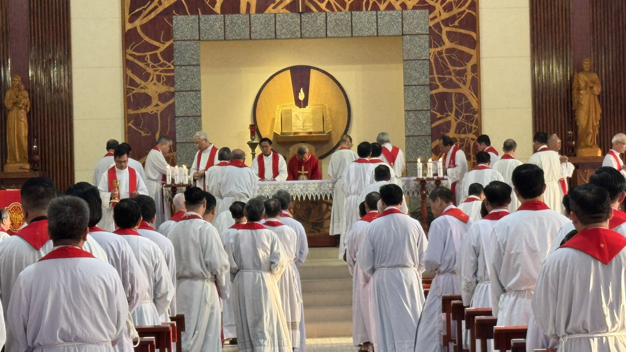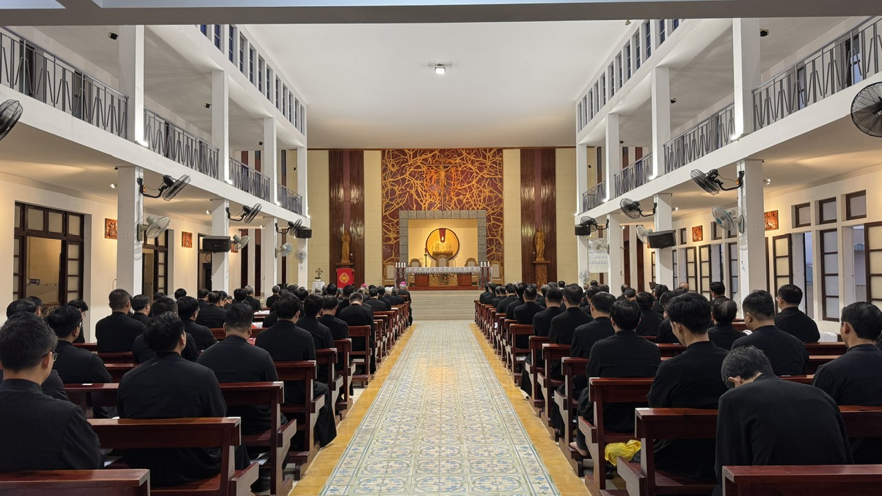 Tiếng chuông sớm vang lên lúc 5 giờ 00. Một ngày mới mở ra trong thinh lặng. Đúng 5 giờ 30, quý cha bước vào giờ nguyện gẫm, lặng lẽ đặt mình trước Chúa. Và đúng 6 giờ 00, thánh lễ được cử hành do Đức cha Phêrô Huỳnh Văn Hai, Giám mục giảng phòng, chủ tế. Cha Antôn Trần Liên Sơn chia sẻ Lời Chúa. Ý lễ dâng lên để xin ơn Chúa Thánh Thần soi sáng và đổi mới tâm hồn.