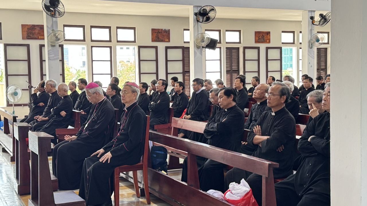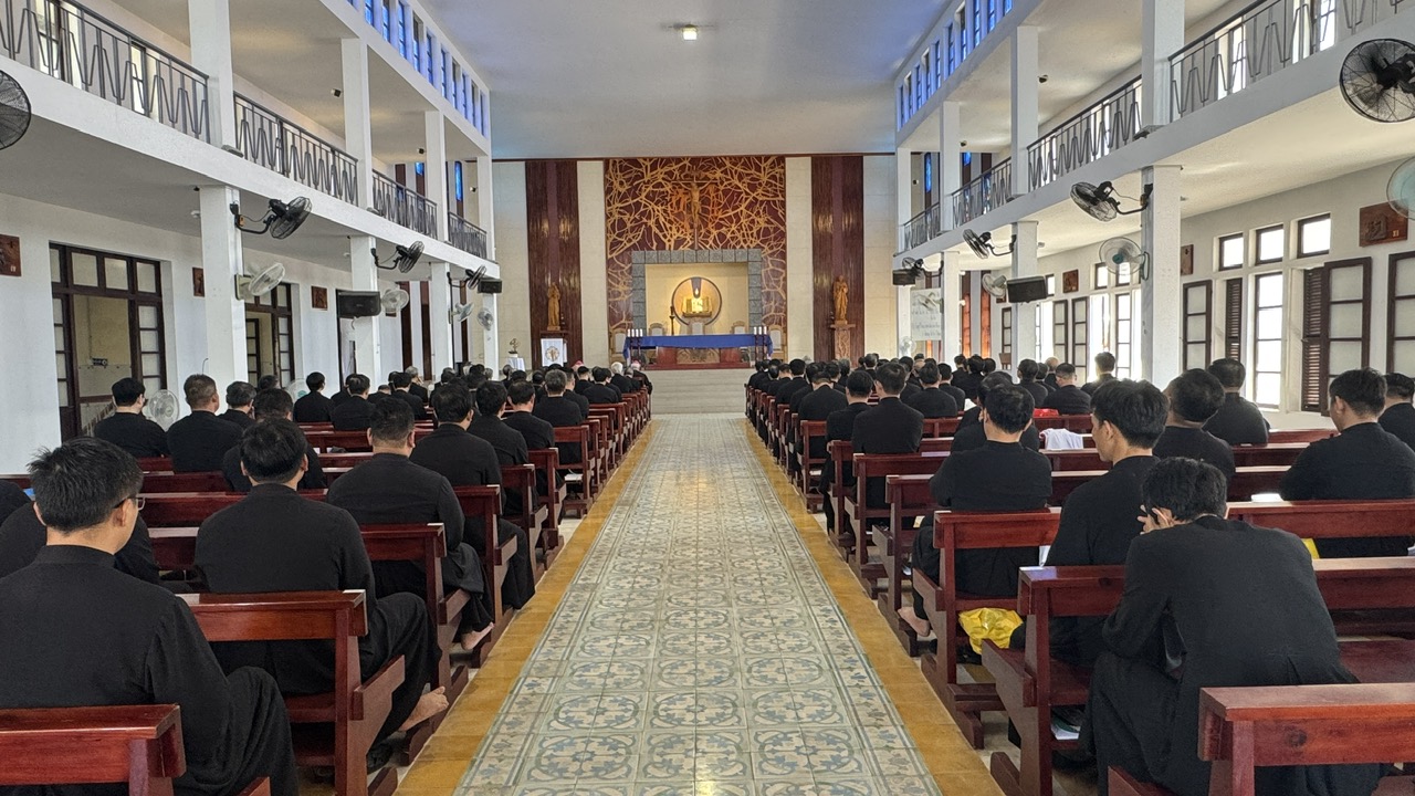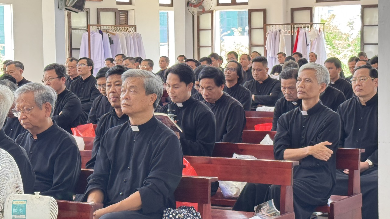 Tiếp đó, lúc 17 giờ 30, quý cha quy tụ tại nhà nguyện để đọc Kinh Chiều và Chầu Thánh Thể. Buổi tối, lúc 19 giờ 45, quý cha lần chuỗi chung, xét mình và đọc kinh tối.