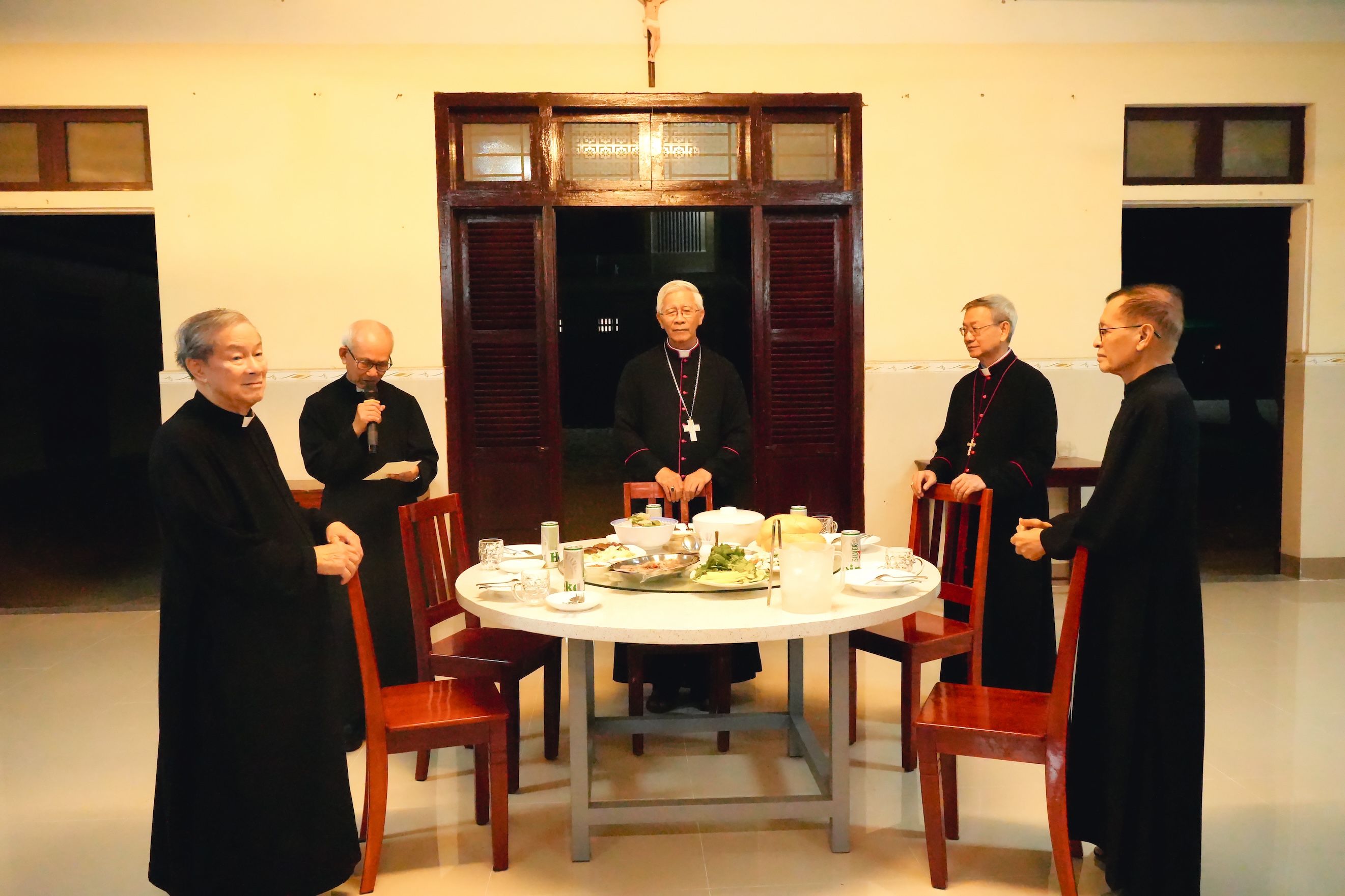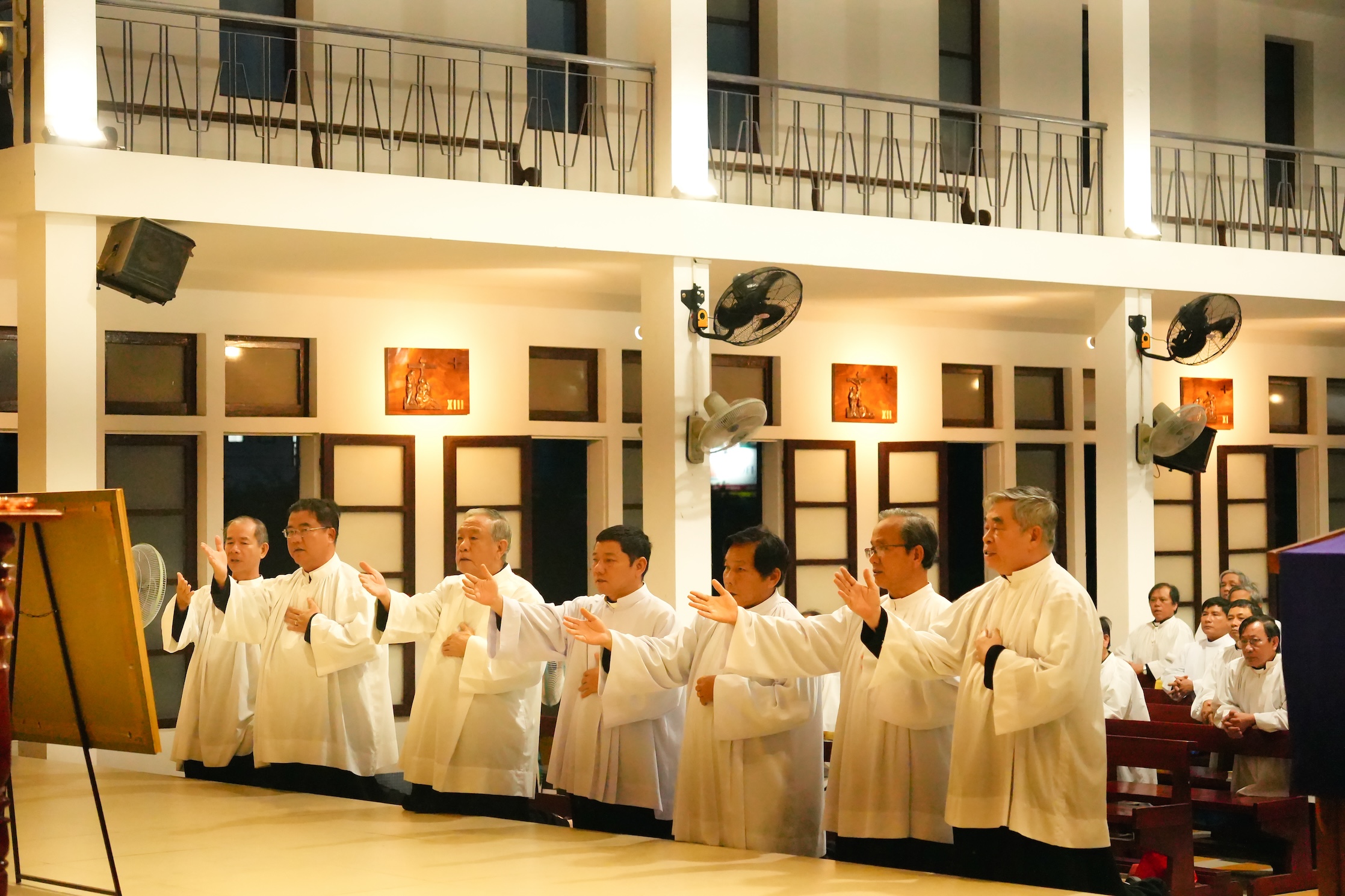 Kết thúc ngày tĩnh tâm, lúc 19 giờ 45, quý cha cùng lần hạt Mân Côi, xét mình và đọc Kinh tối để tạ ơn Chúa.
