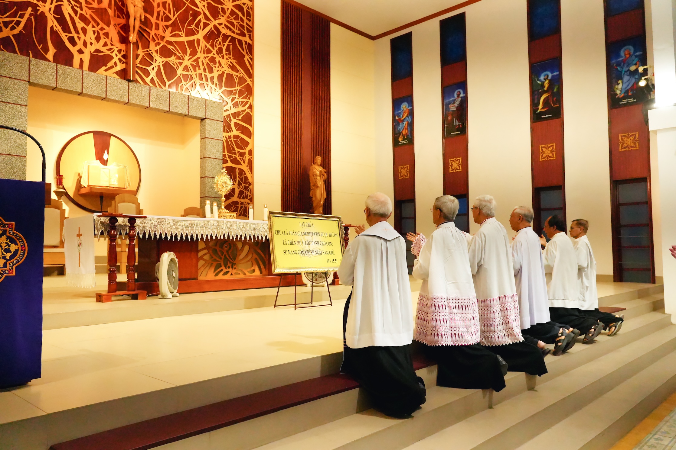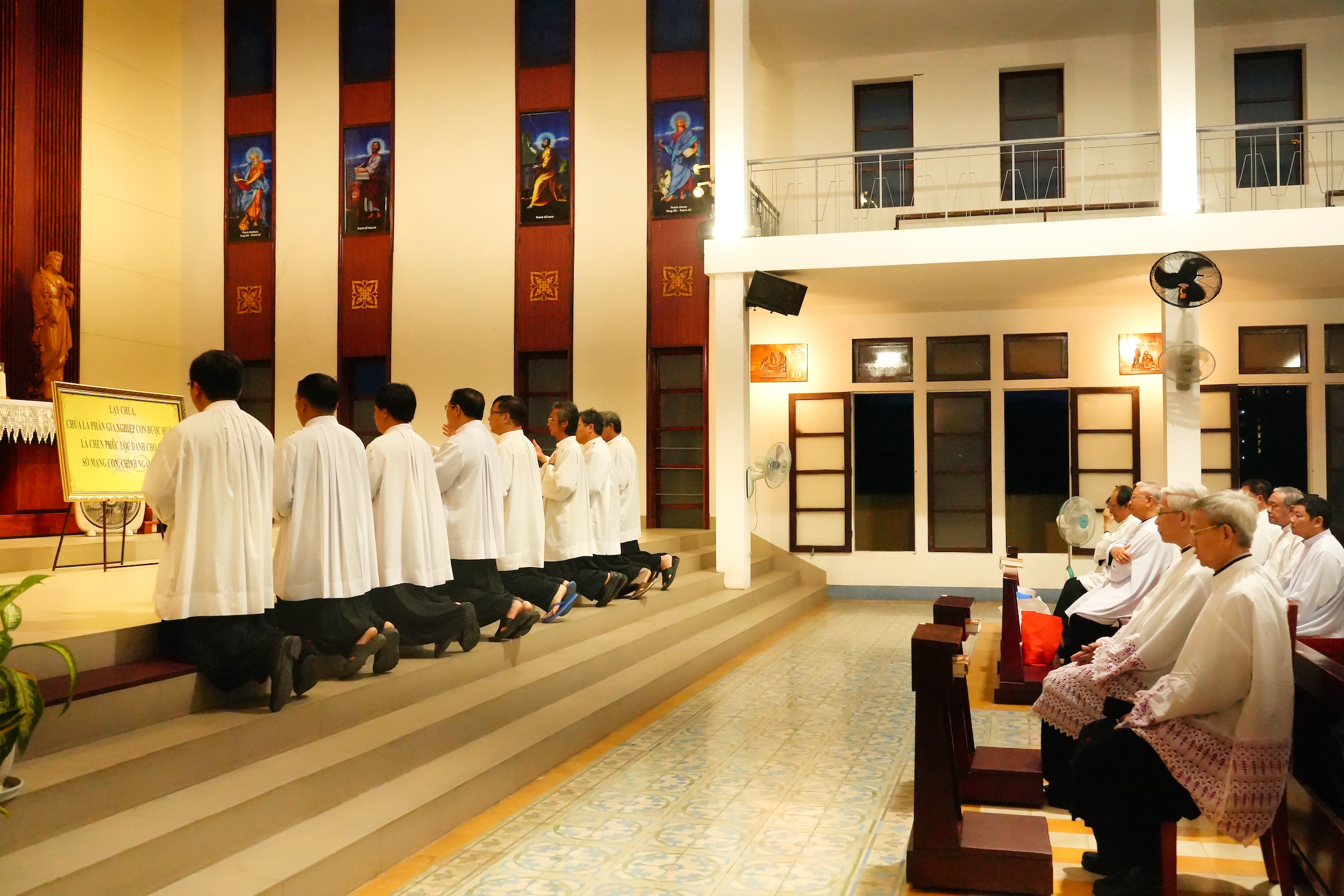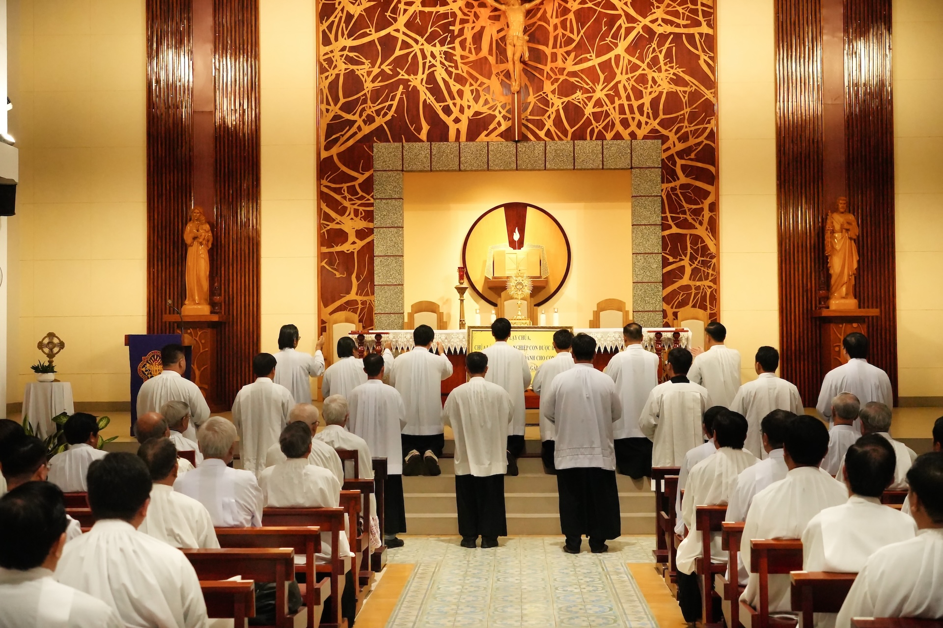 Lúc 17 giờ 30 tại nhà nguyện Chủng viện, quý cha cùng đọc Kinh Chiều và Chầu Thánh Thể. Trong giờ Chầu, từng linh mục quỳ trước Cung Thánh lặp lại lời tuyên hứa trung thành: