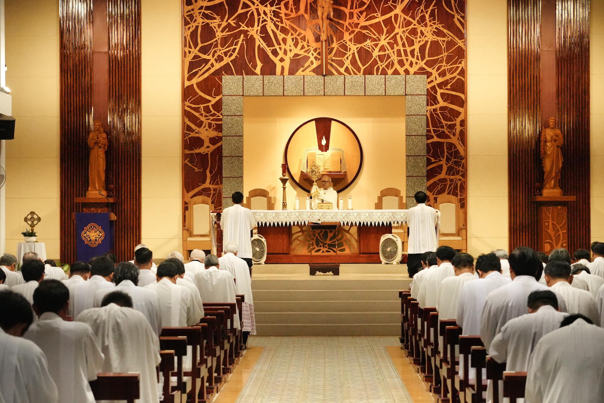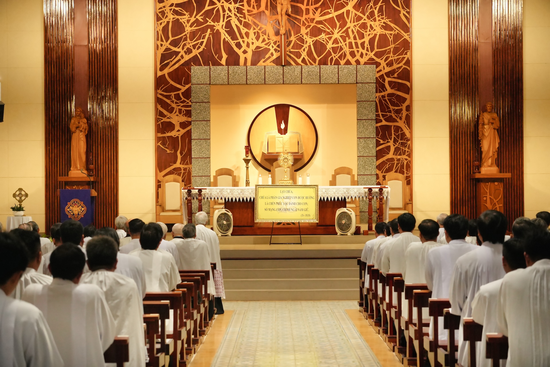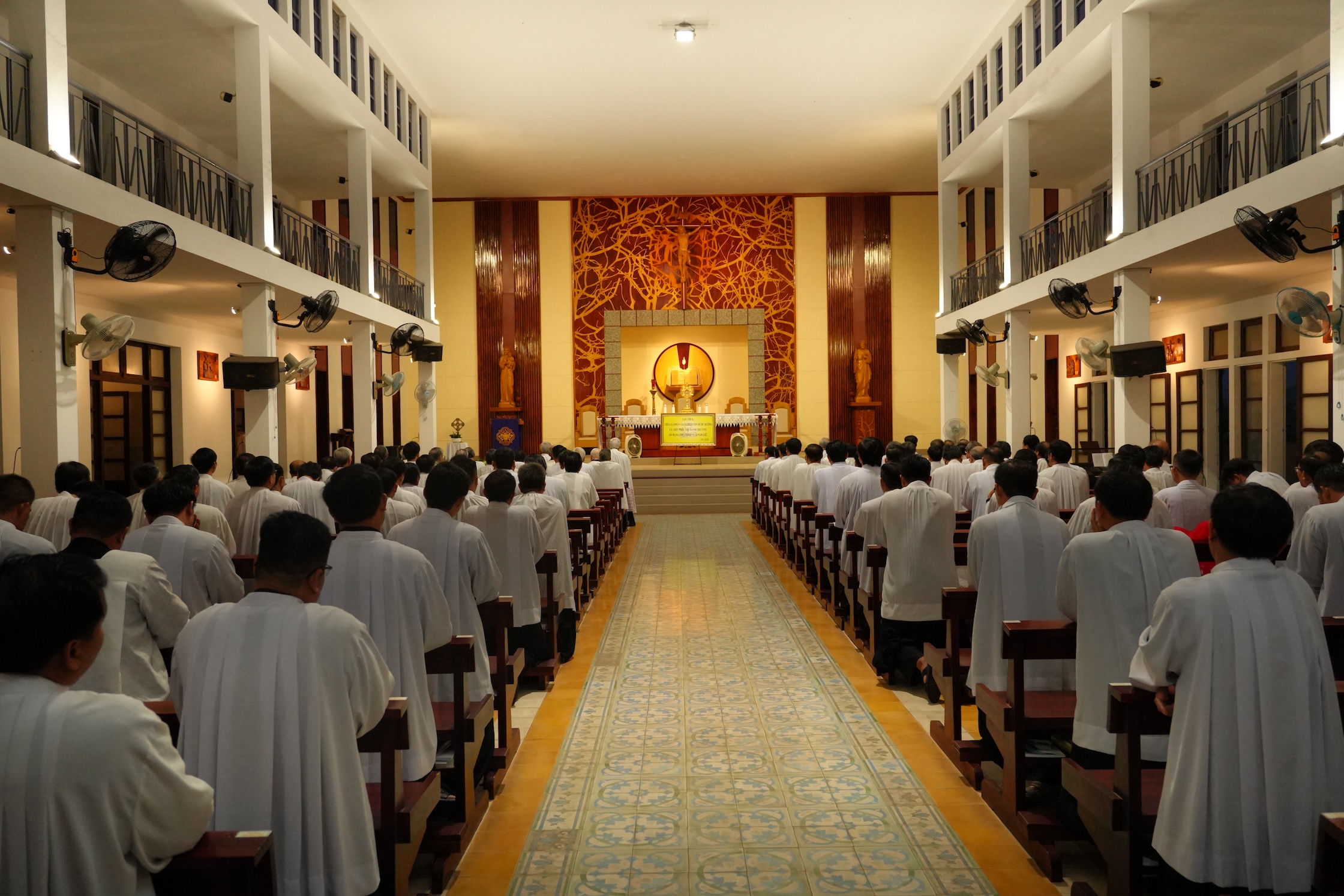 Lúc 17 giờ 30 tại nhà nguyện Chủng viện, quý cha cùng đọc Kinh Chiều và Chầu Thánh Thể. Trong giờ Chầu, từng linh mục quỳ trước Cung Thánh lặp lại lời tuyên hứa trung thành: