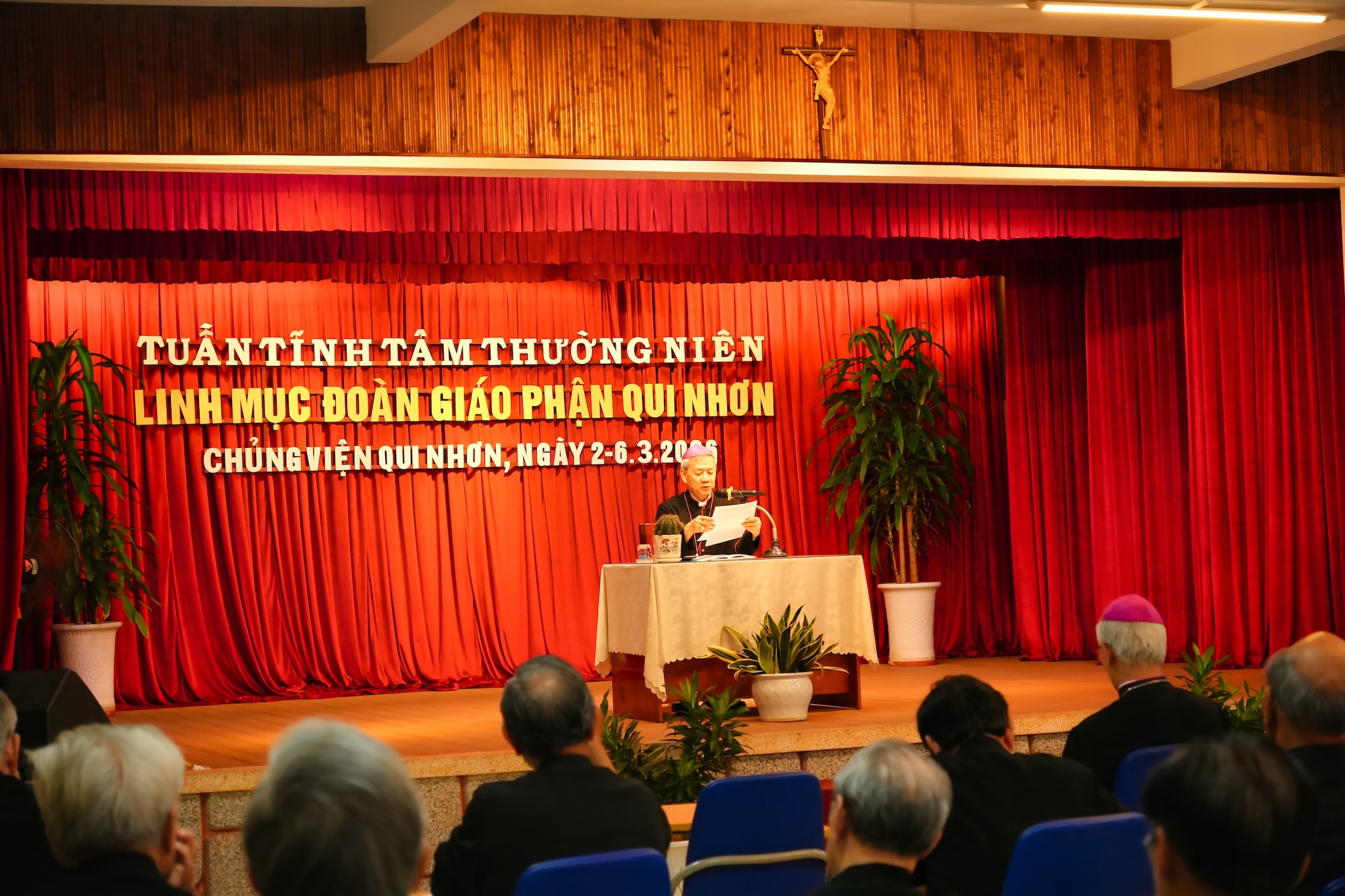 Sau đề tài cuối cùng, cha Giuse Trương Đình Hiền, Tổng Đại diện, thay mặt Đức cha Giáo phận và quý linh mục bày tỏ lòng tri ân Đức cha Phêrô Huỳnh Văn Hai, vị giảng phòng đã dành thời gian hiện diện, chia sẻ kinh nghiệm mục tử và nâng đỡ đời sống linh mục trong những ngày tĩnh tâm.